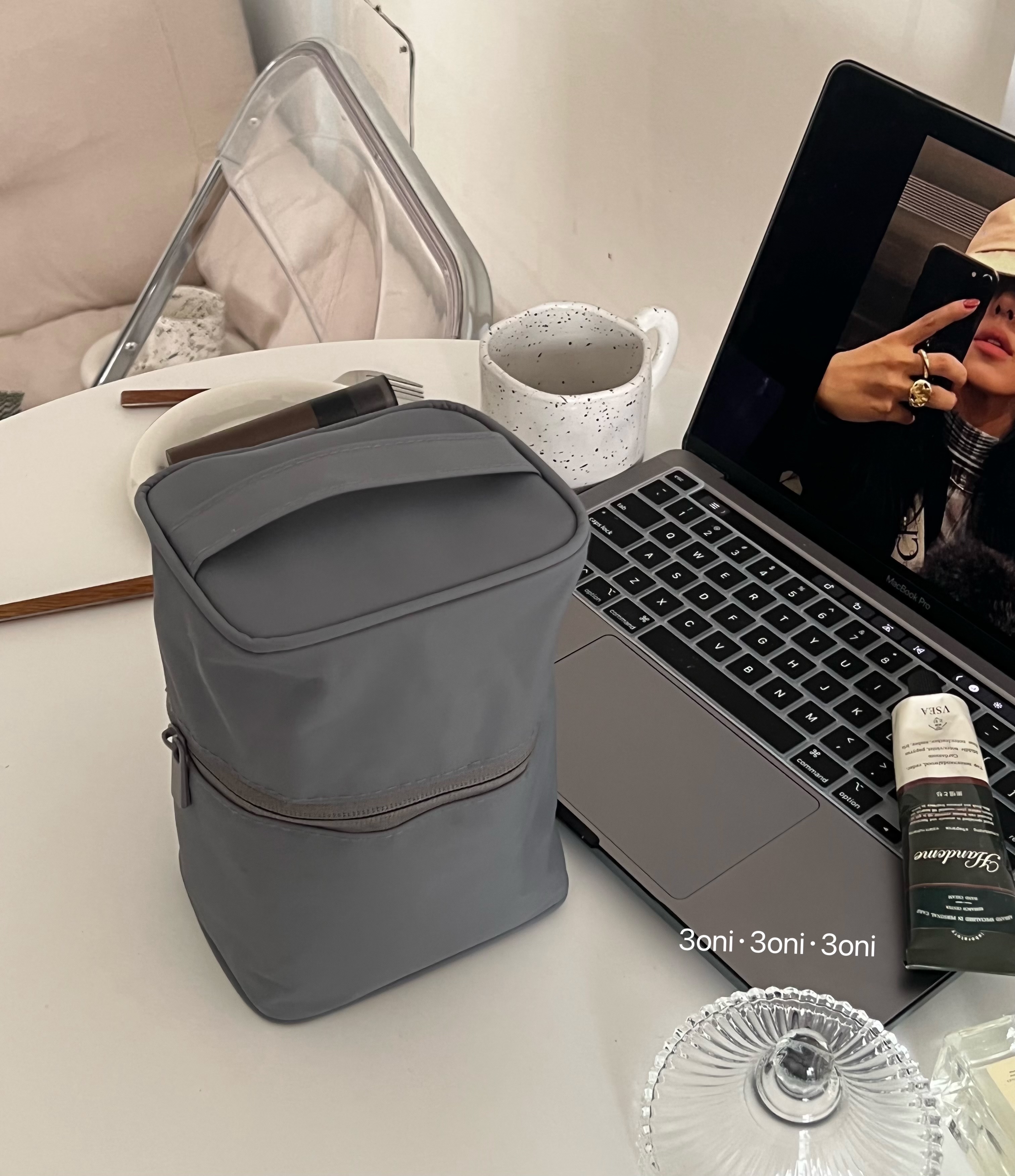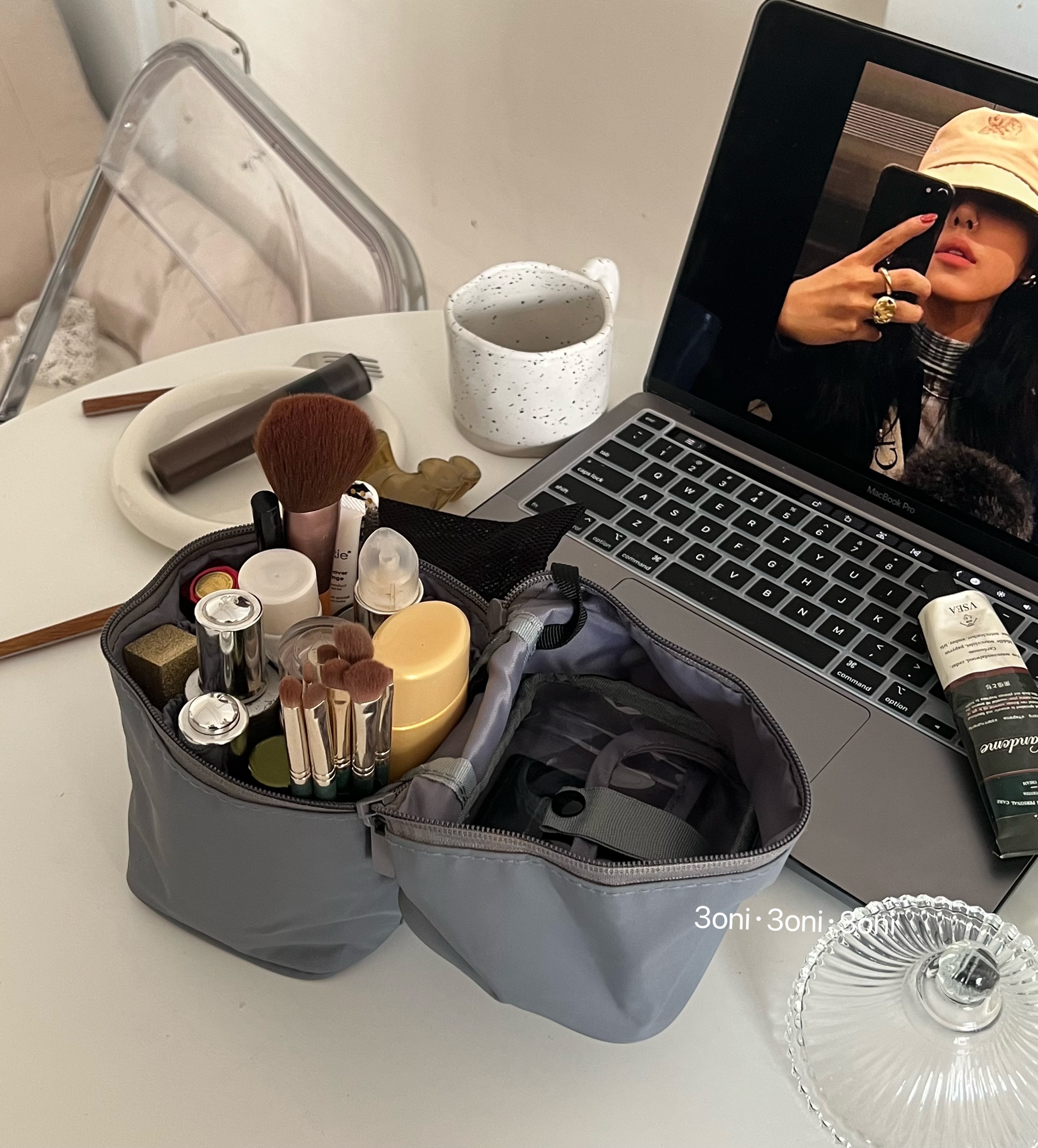 盐系灰尼龙立体圆筒洗漱包回购款!高级质感厚实收纳便携包化妆包