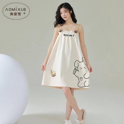 吊带睡裙女士夏季薄款纯棉无袖家居服夏天性感可爱宽松卡通睡衣女