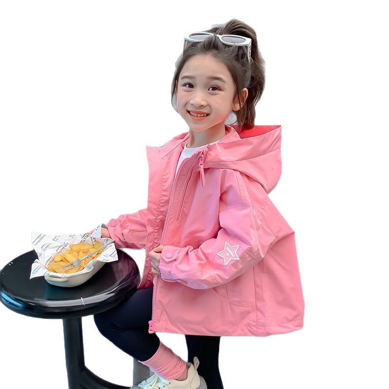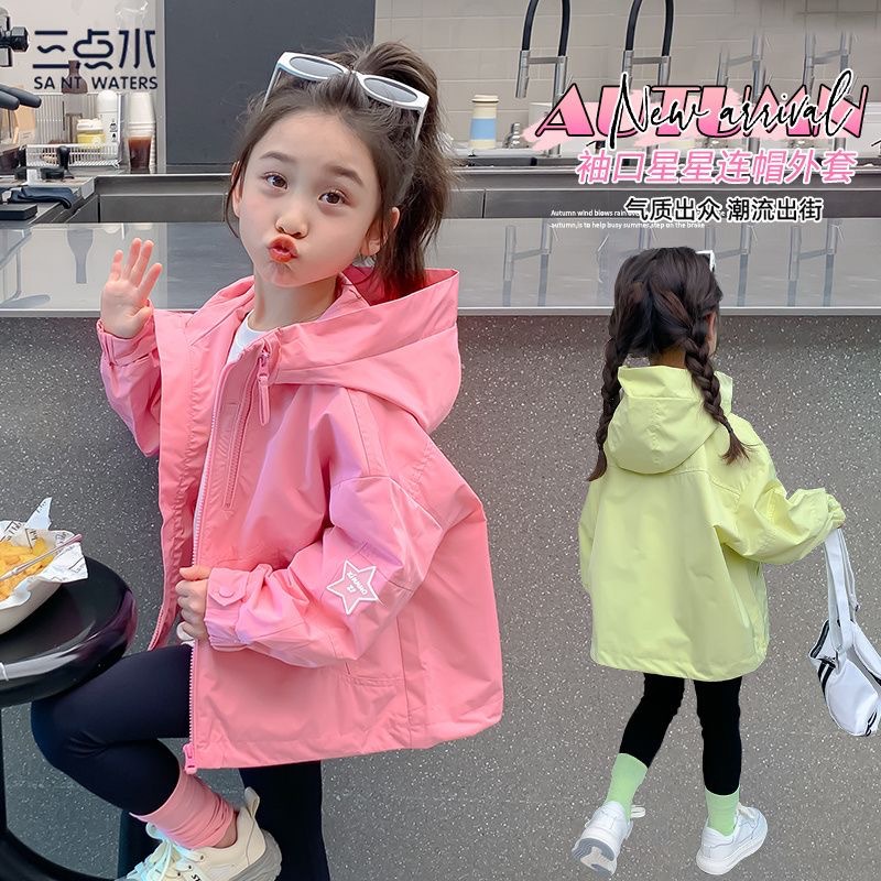 女童冲锋衣外套春秋款2025新款洋气儿童连帽上衣潮双拉链风衣夹克