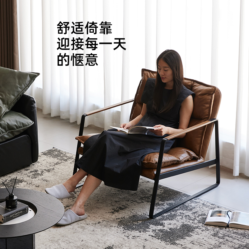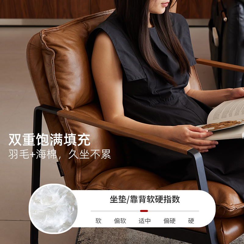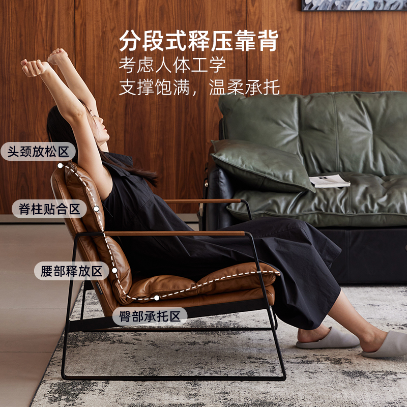 EVITAHome真皮单人沙发复古书房休闲沙发椅高端大气卧室阳台躺椅