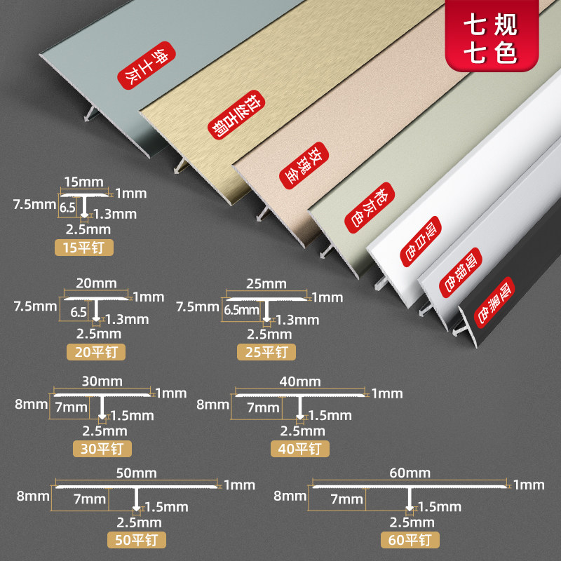 铝合金t型收口条木地板压边条门槛石扣条过门压条地板瓷砖接缝条