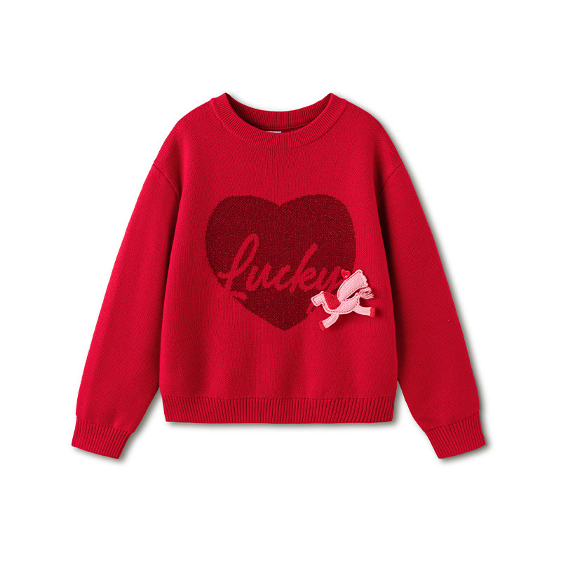 商场同款巴拉巴拉儿童毛衣女童新年针织衫大童红色毛衫2026春装潮