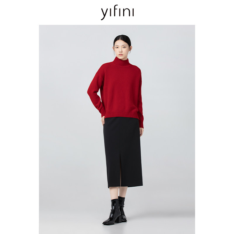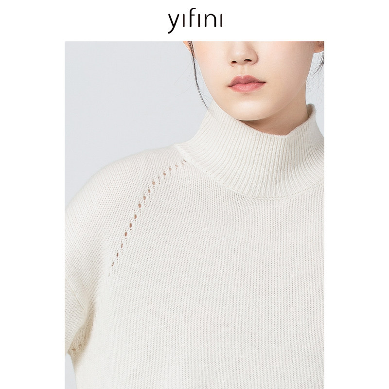 Yifini/易菲高领保暖宽松毛衫女秋冬新款百搭通勤针织套头衫