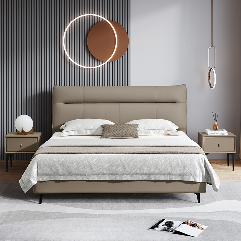 V6家居头层黄牛皮床饱满高弹力棉