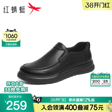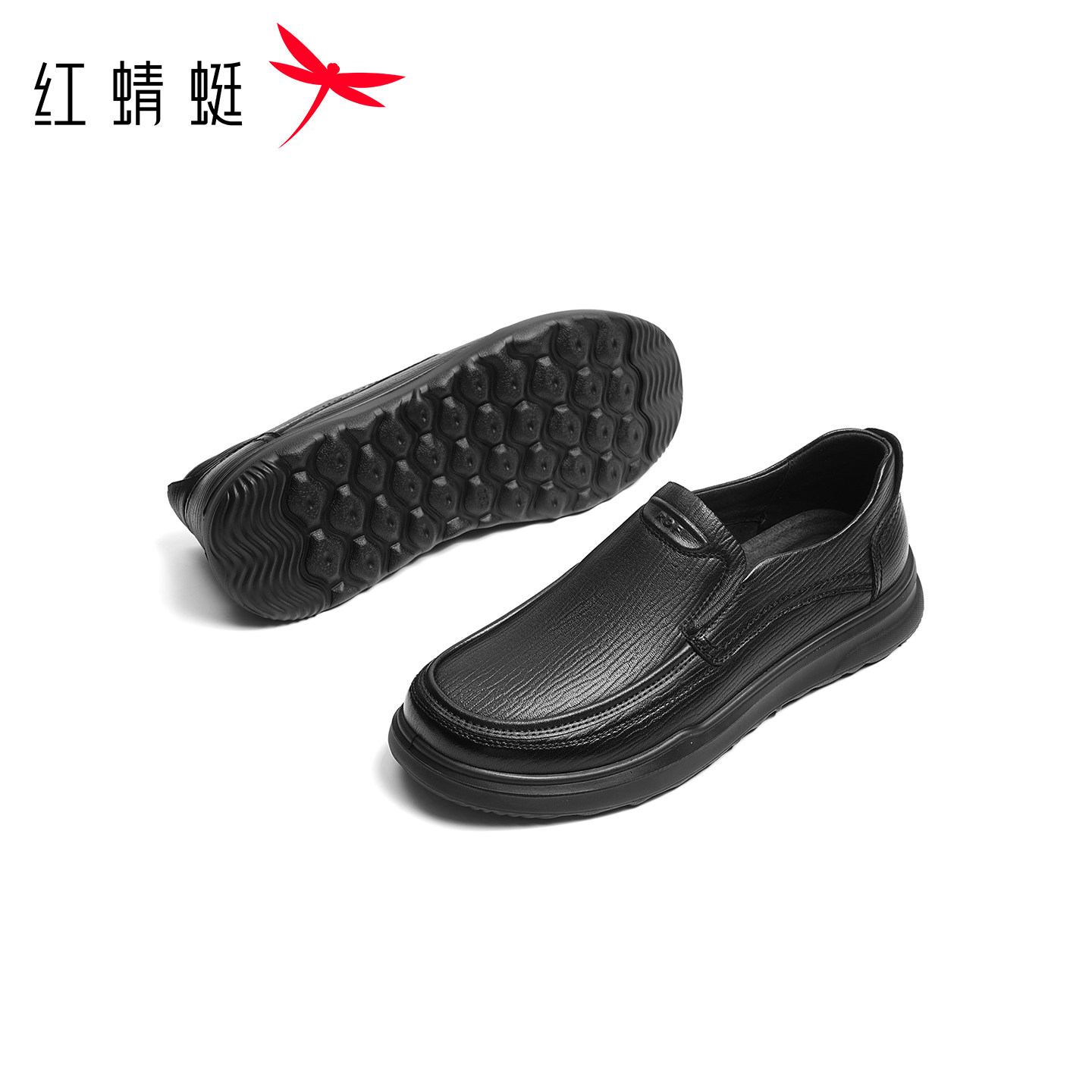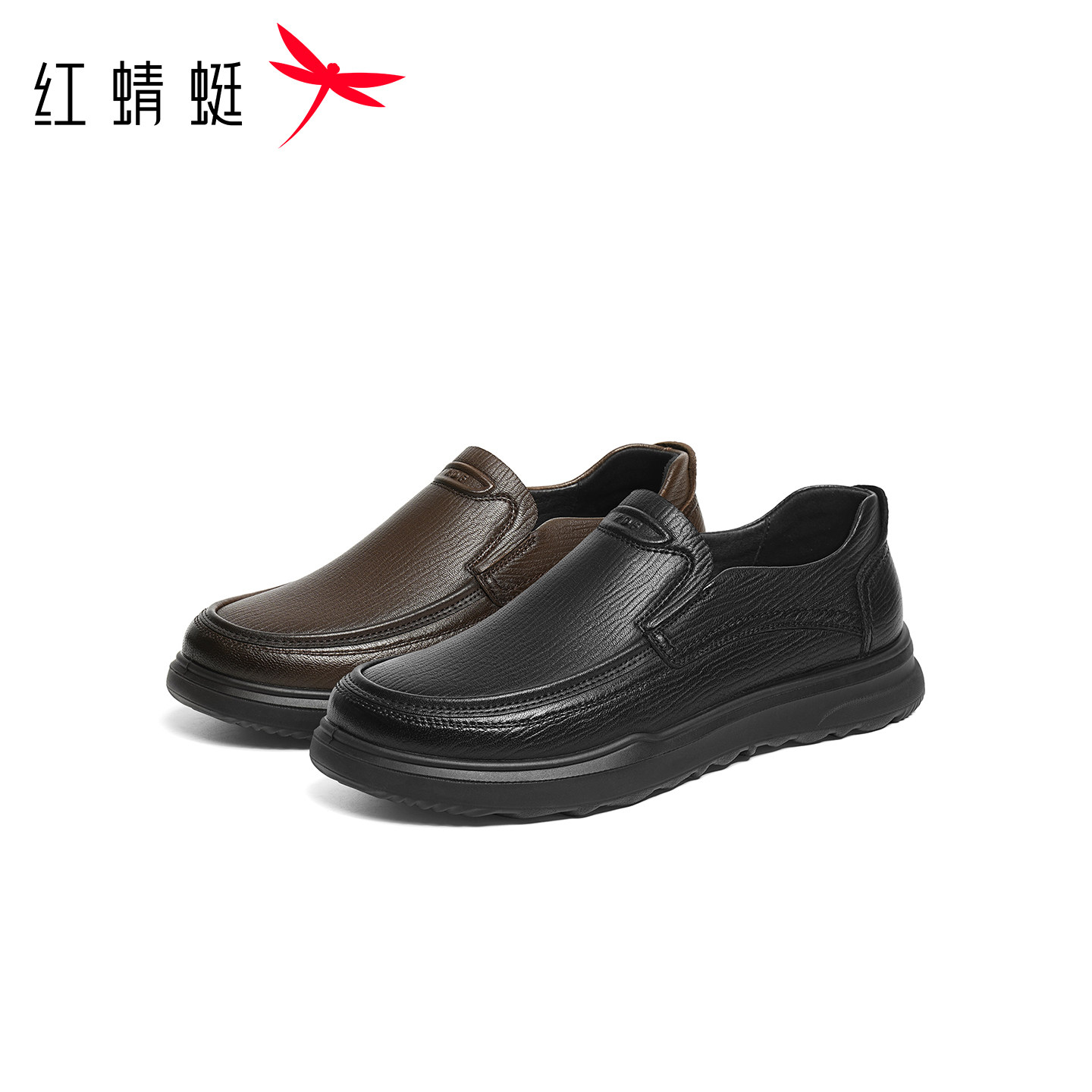 红蜻蜓男士休闲皮鞋2026春季新款男鞋羊皮软底中老年一脚蹬爸爸鞋