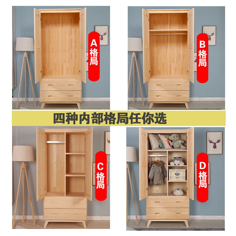 定制全实木衣柜两门23门原木质组装拼接卧室整体衣厨简易松木儿童