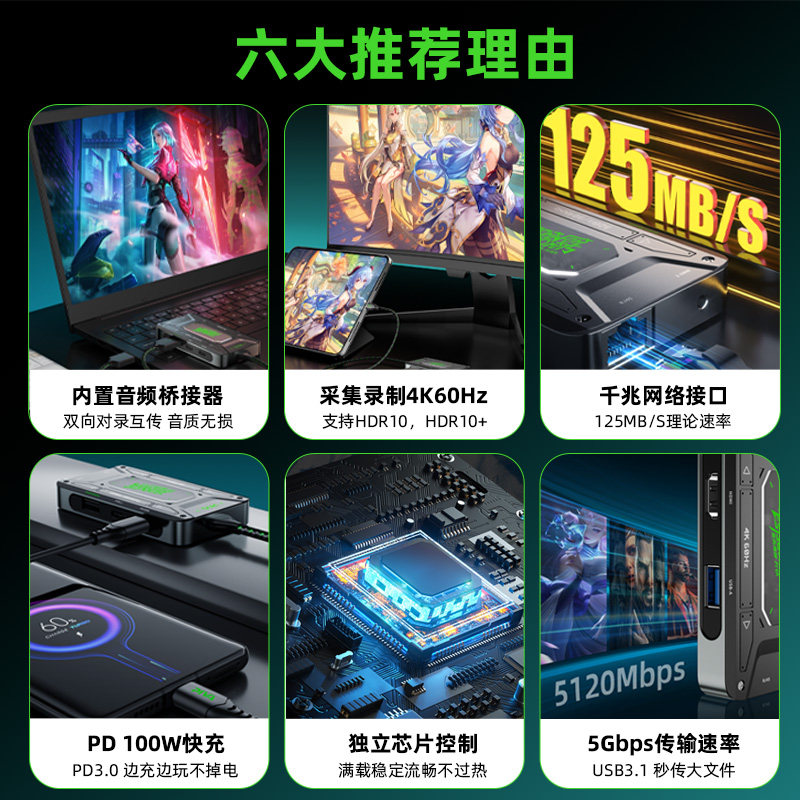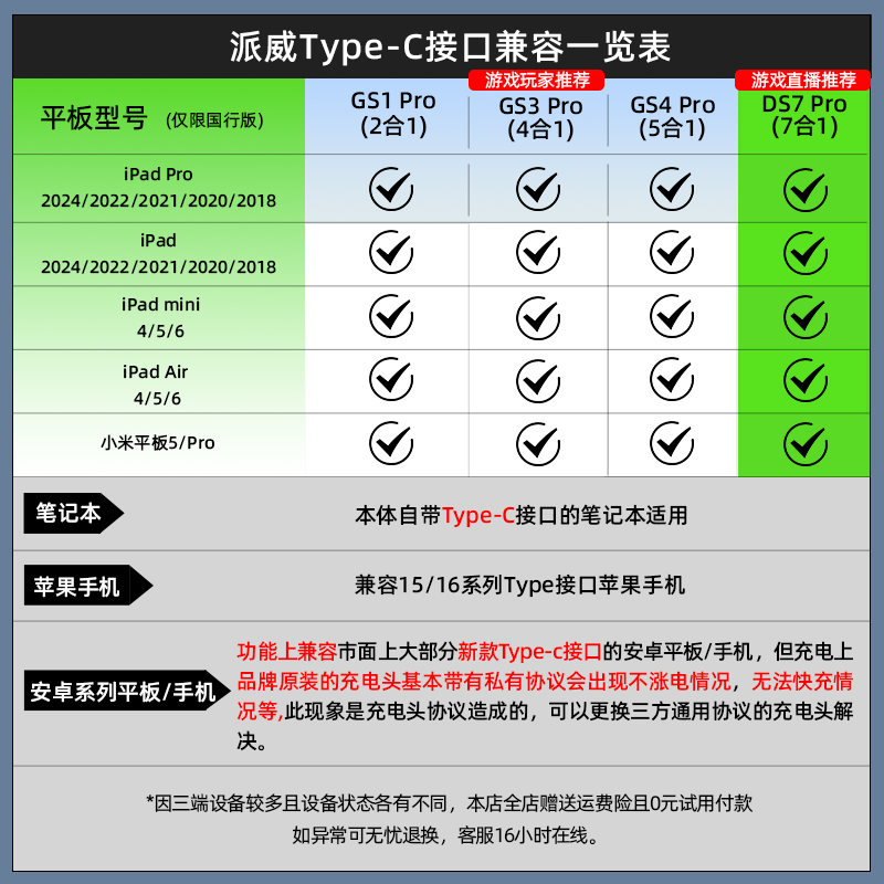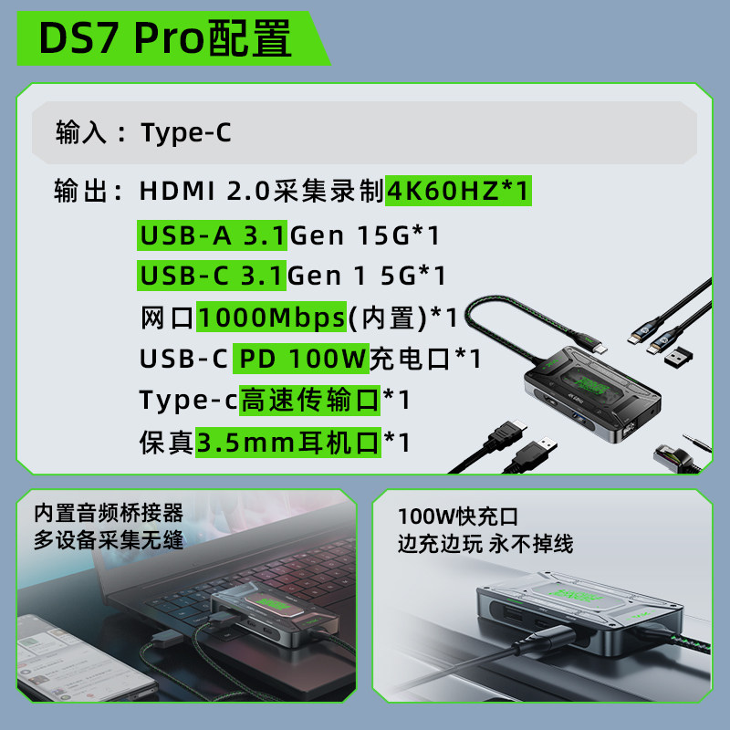 Piva派威typec转接器ds7转换器hdmi投屏分线器7合1采集游戏直播多接口转接头适用于手机安卓苹果17笔记本电脑