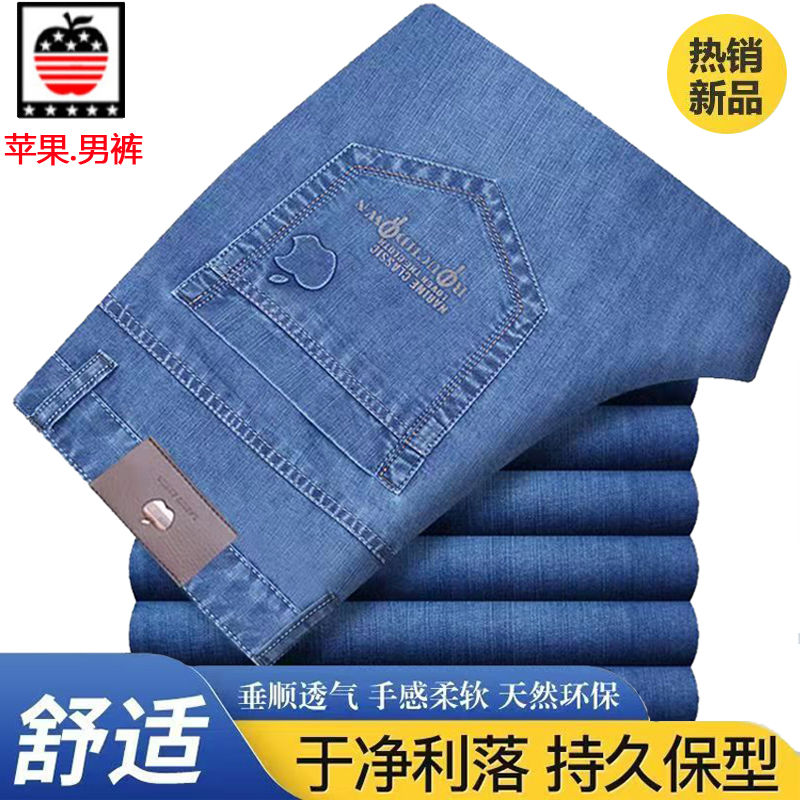 正品苹果牛仔裤男士秋冬厚款弹力直筒裤男裤宽松休闲中年高腰长裤