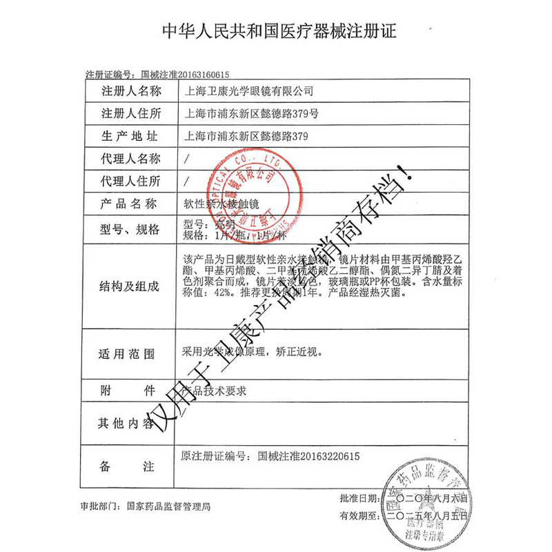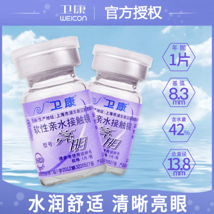 卫康亮明隐形近视眼镜年抛1片装透氧水润超薄无感高度数aj