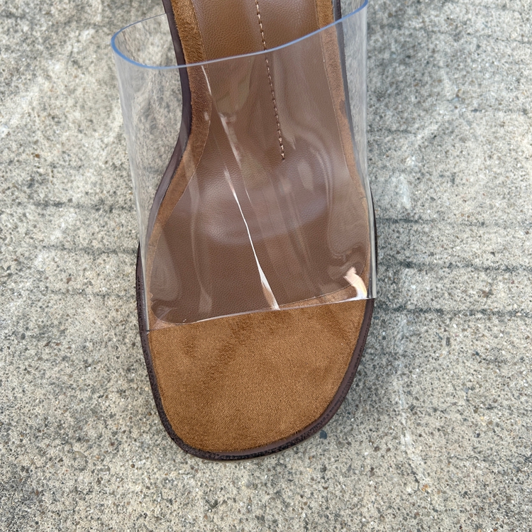 西班牙 2025年秋季新款坡跟厚底高跟拖鞋女防水台凉鞋透明松糕鞋