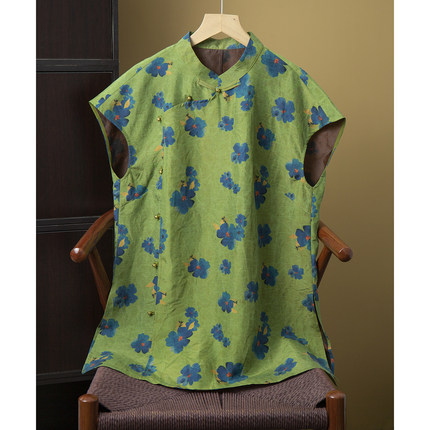丝艺 香云纱龟纹真丝印花奥黛新中式中长款上衣女100%桑蚕丝T恤夏