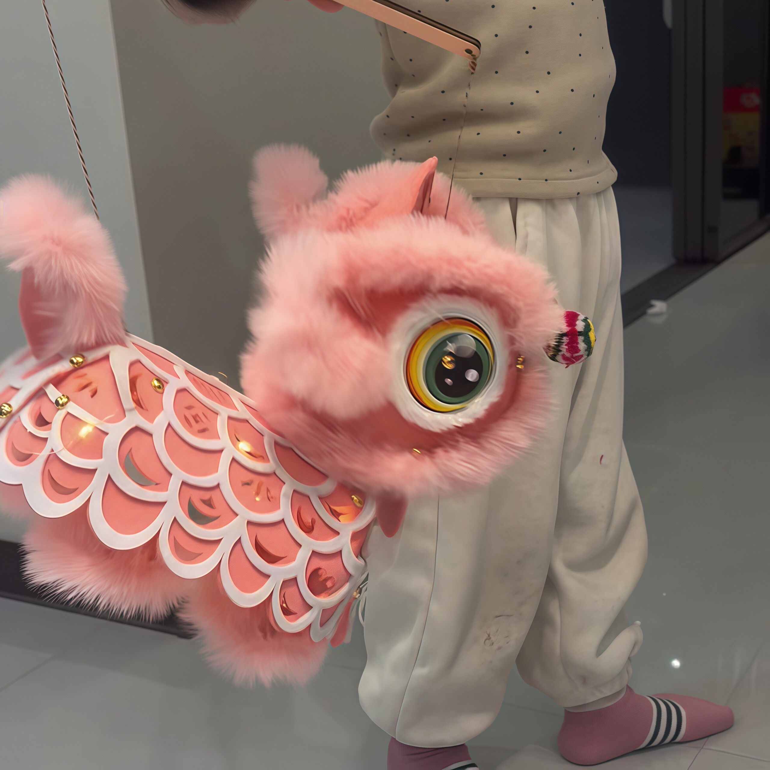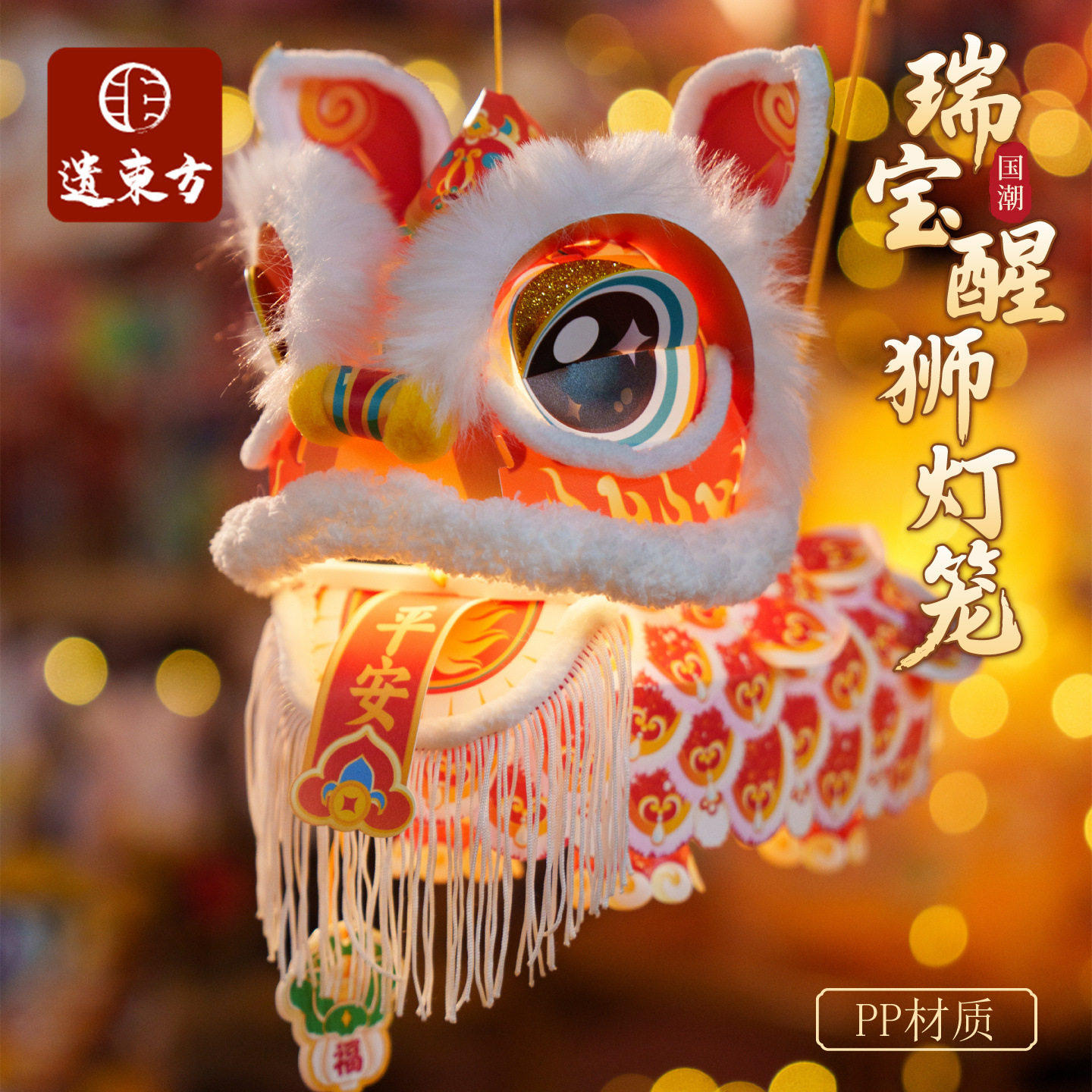 醒狮花灯毛绒灯笼DIY材料包手提花灯节日装饰品古风挂饰创意礼物