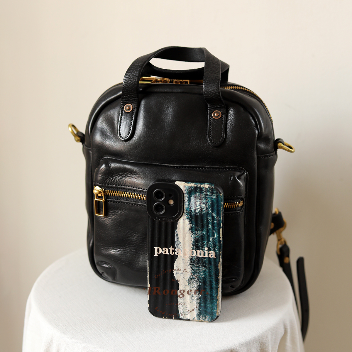 荣轻复古手工牛皮小双肩包水洗做旧植鞣皮斜挎包多用途单肩背包女