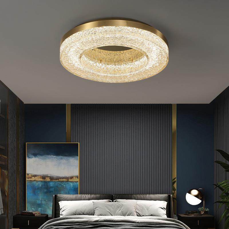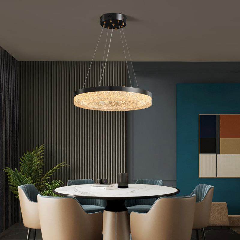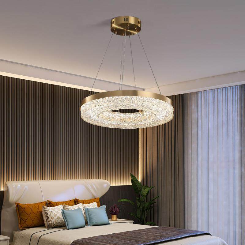 全铜轻奢圆环形客厅吊灯后现代树脂灯罩餐厅吊线灯智能卧室灯