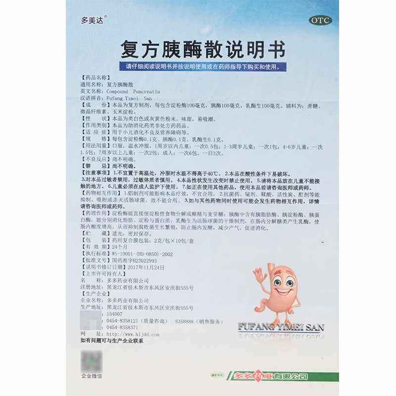 多美达 复方胰酶散10袋小儿小孩儿童消化不良药营养障碍