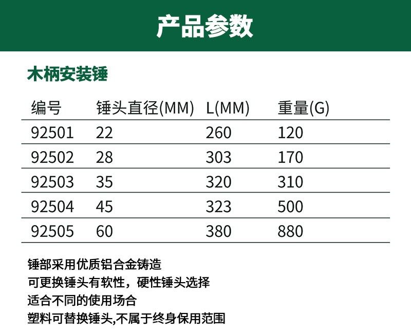 世达 无反弹木柄安装锤 可换锤头 92501 92502 92503 92504 92505