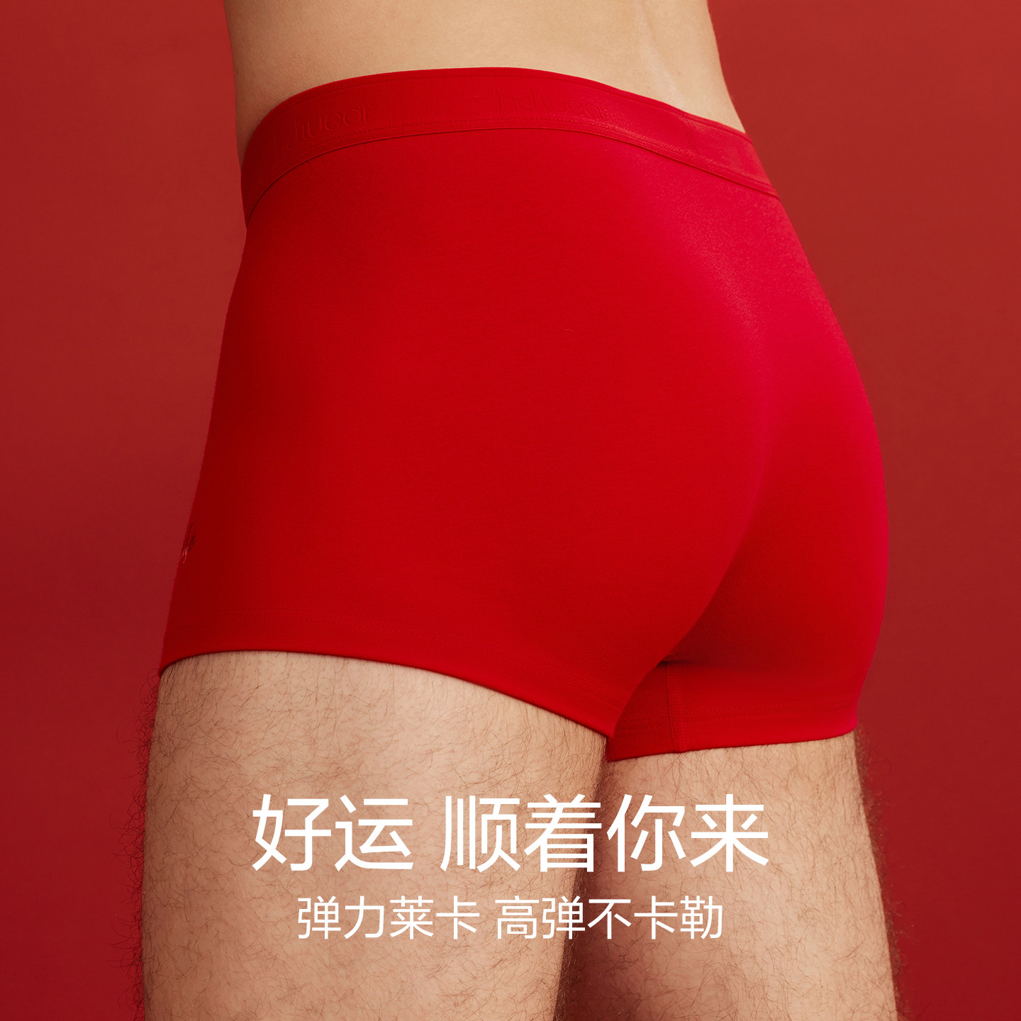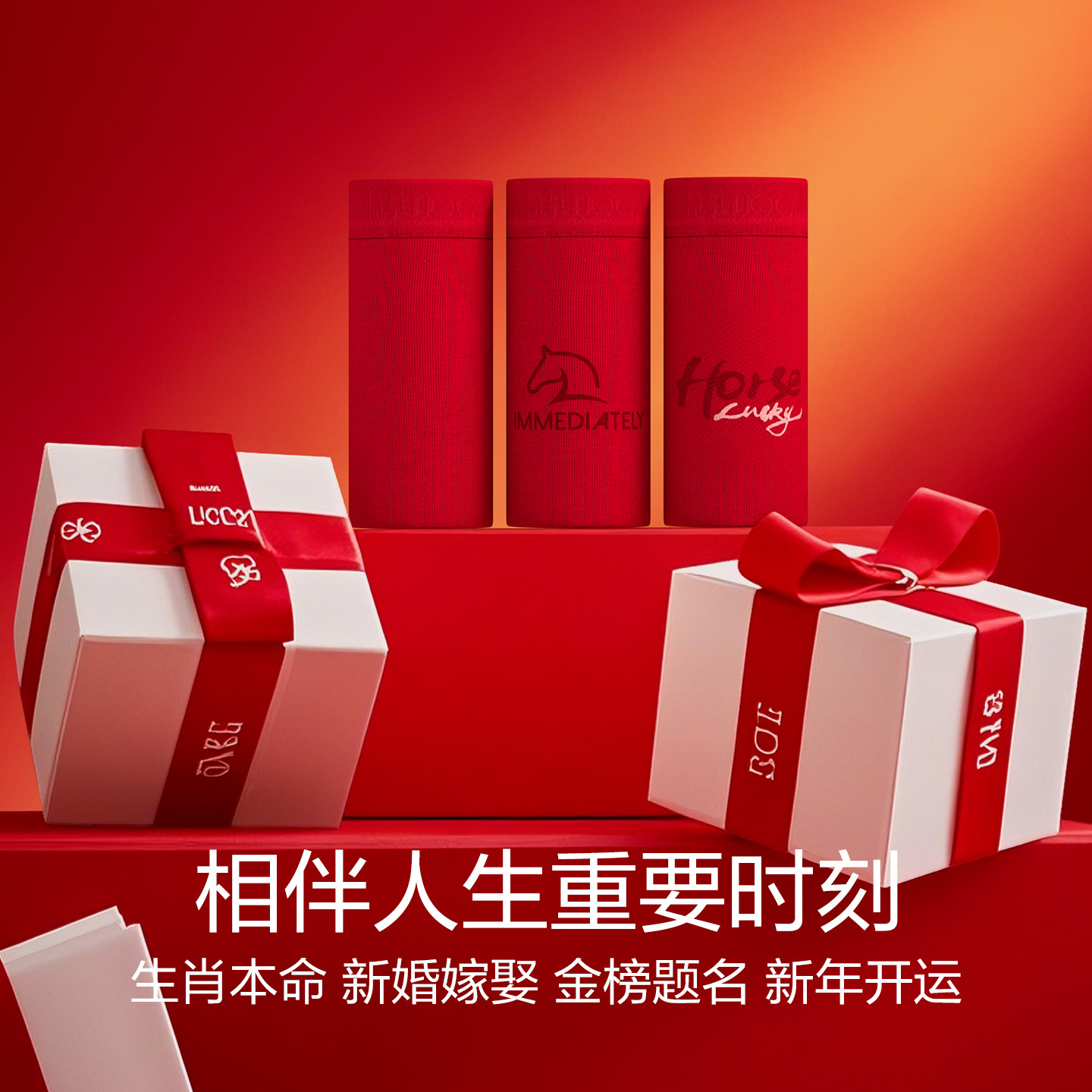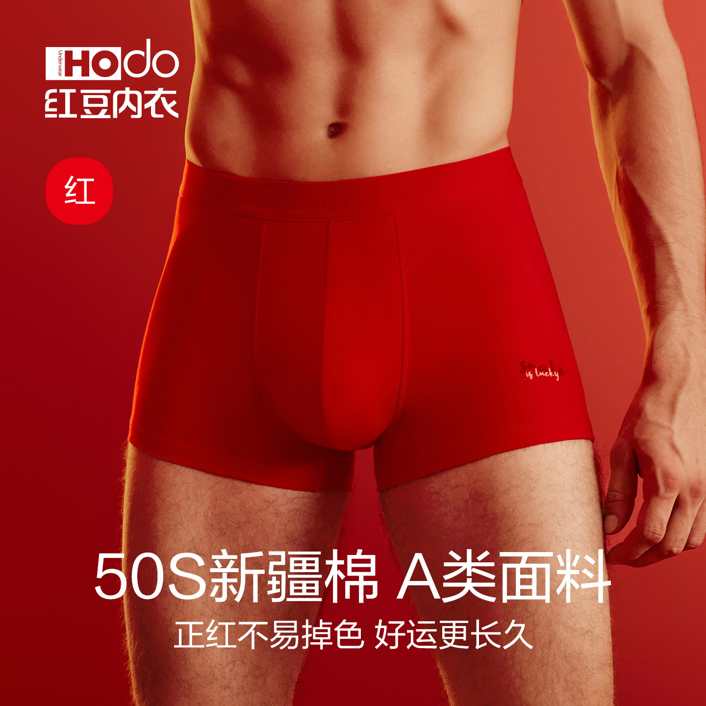 红豆男士大红色内裤本命年纯棉裆属马结婚礼物四角平角短裤头1条