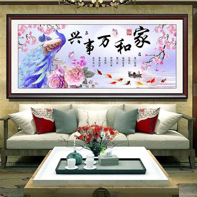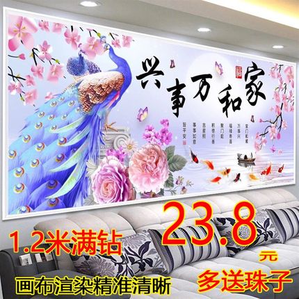 2022新款钻石画满钻客厅家和万事兴孔雀圆砖点钻贴十字绣5D钻石秀