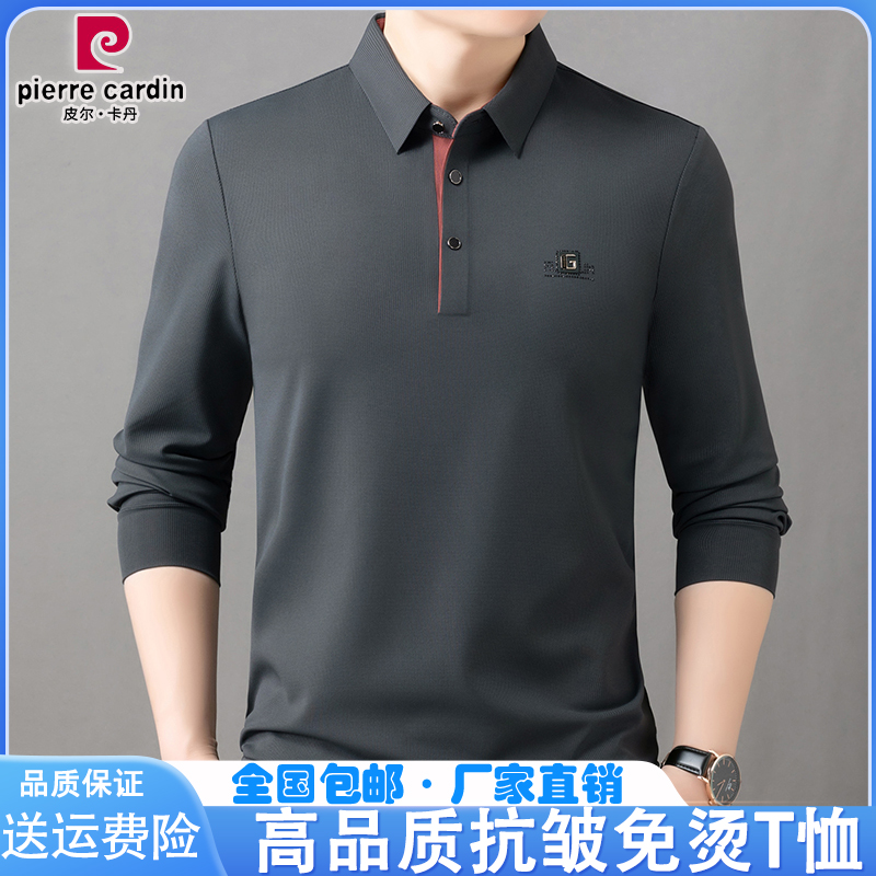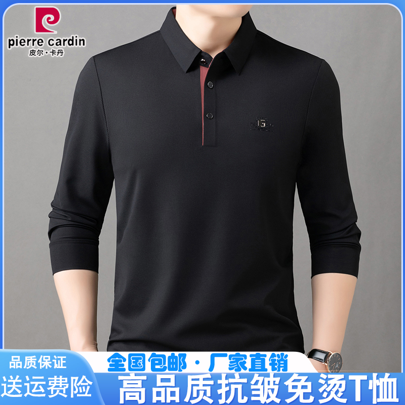 皮尔卡丹春秋男士长袖t恤中年翻领免烫宽松大码polo纯色打底上衣