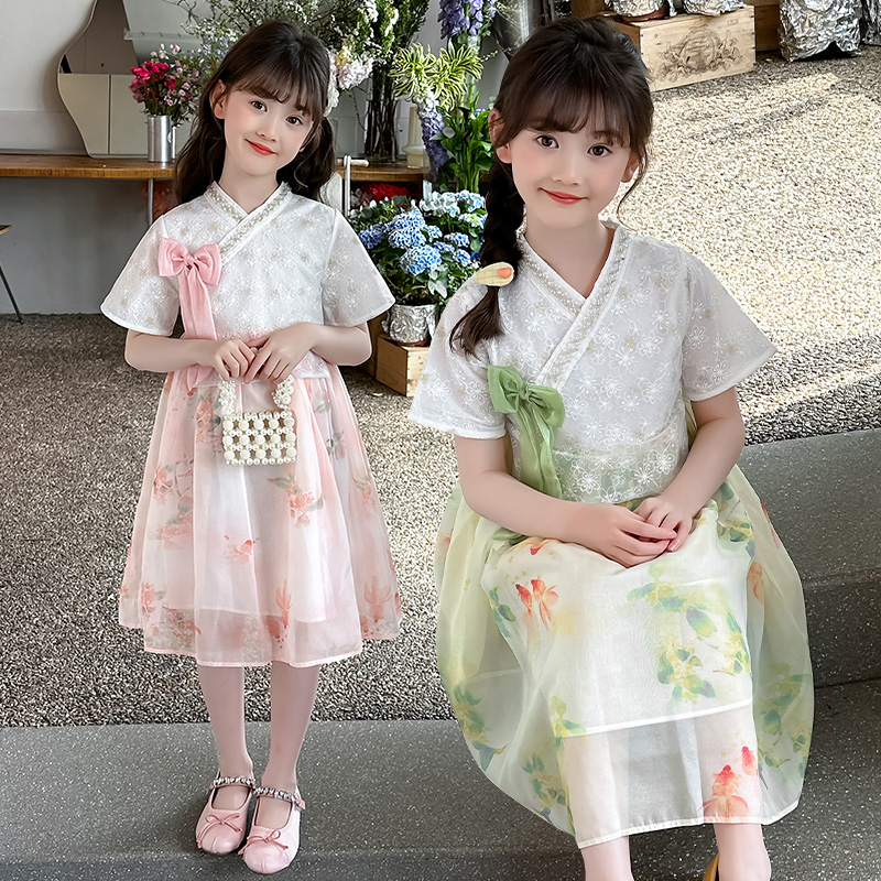 汉服连衣裙女童夏季2024新款中大儿童装洋气时髦国风新中式公主裙
