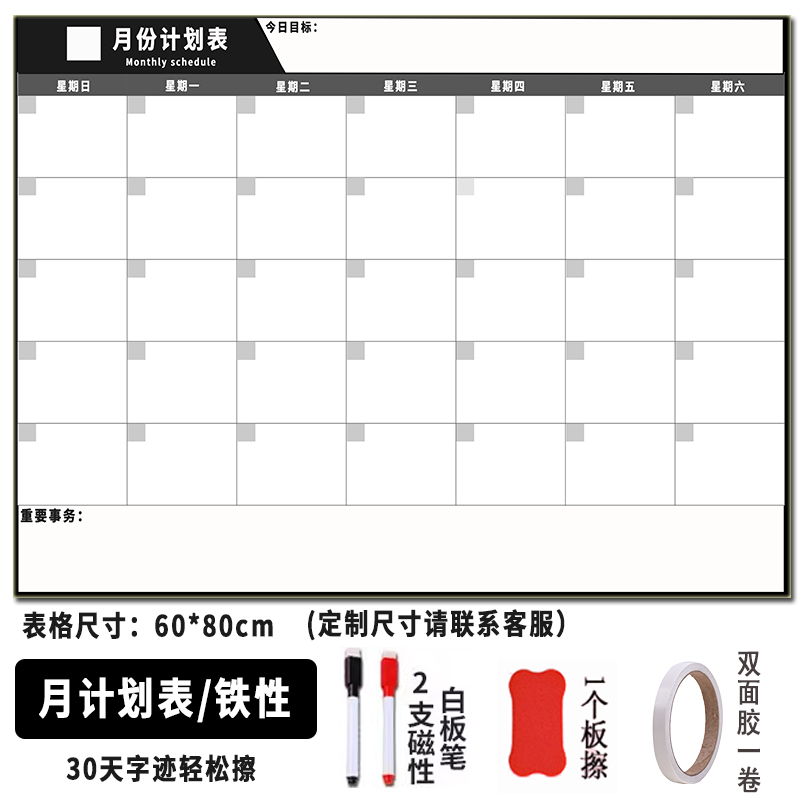 月度工作计划表墙贴进度表月份行事历考勤打卡积分表可擦写白板贴