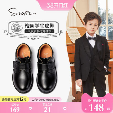 【头层牛皮】斯纳菲男童皮鞋学生小黑鞋牛皮校园演出西装春秋单鞋