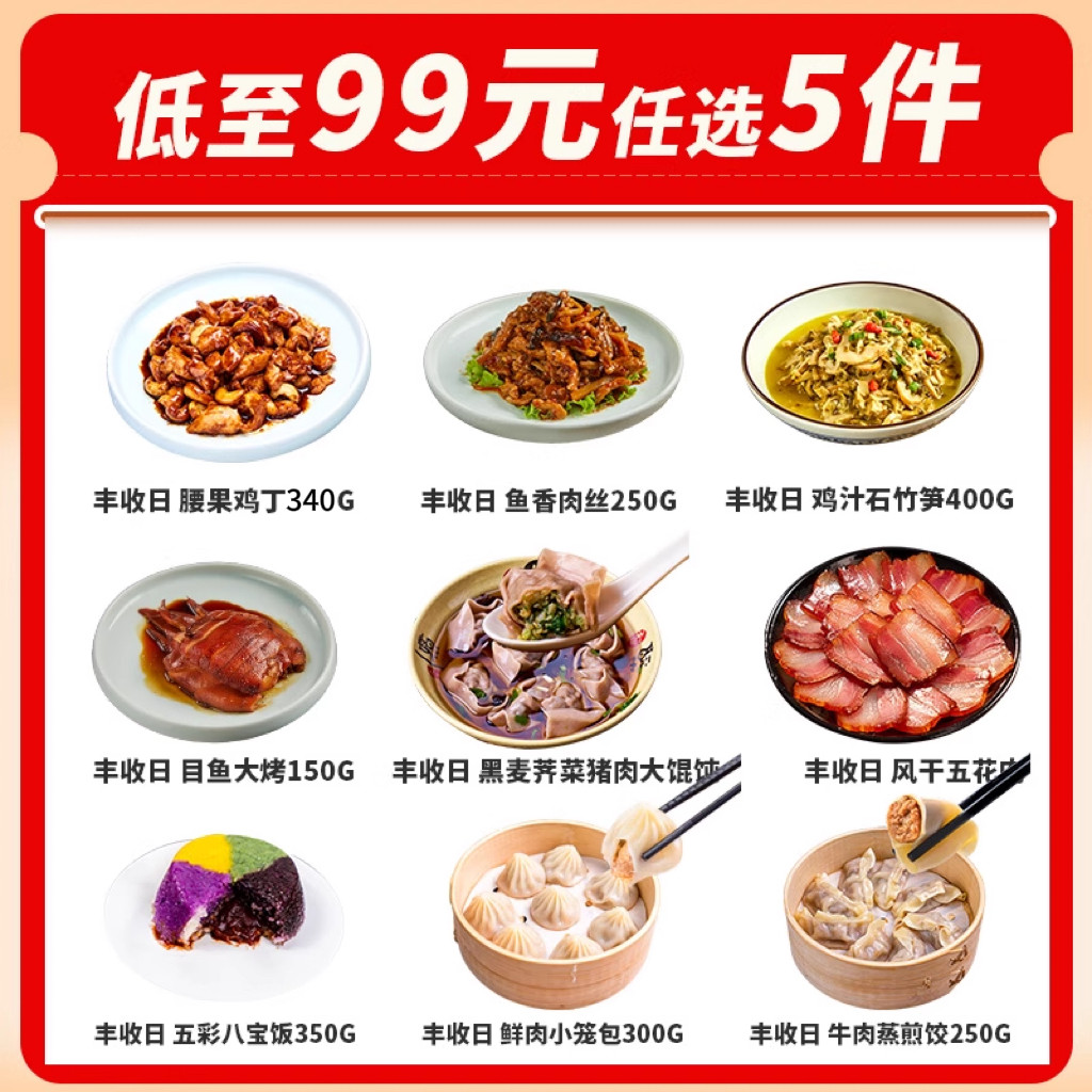99任选5丰收日腰果鸡丁馄饨鱼香肉丝小笼包半成品快手家常菜加热