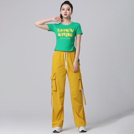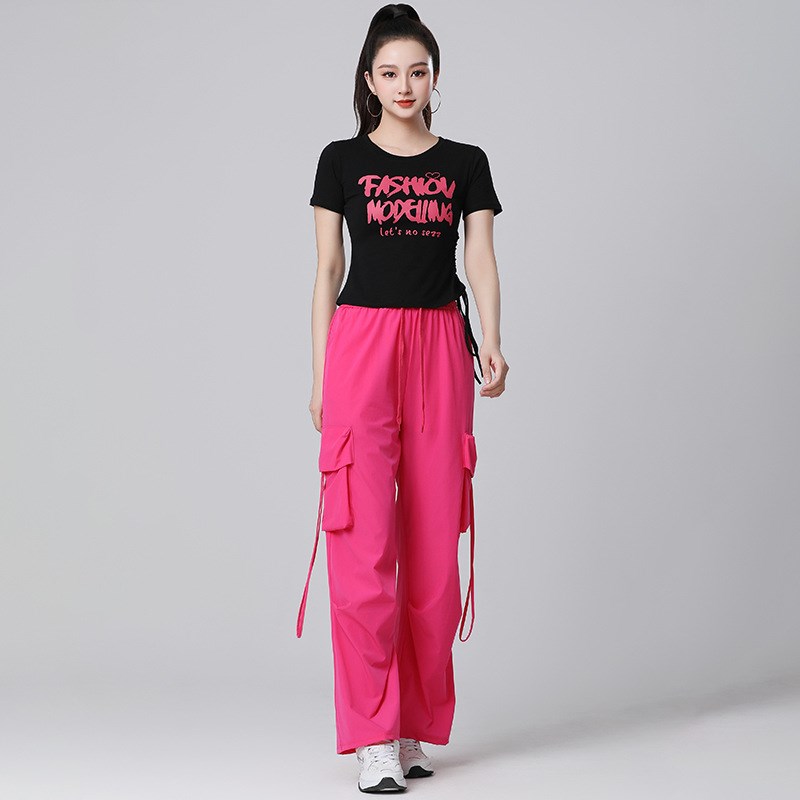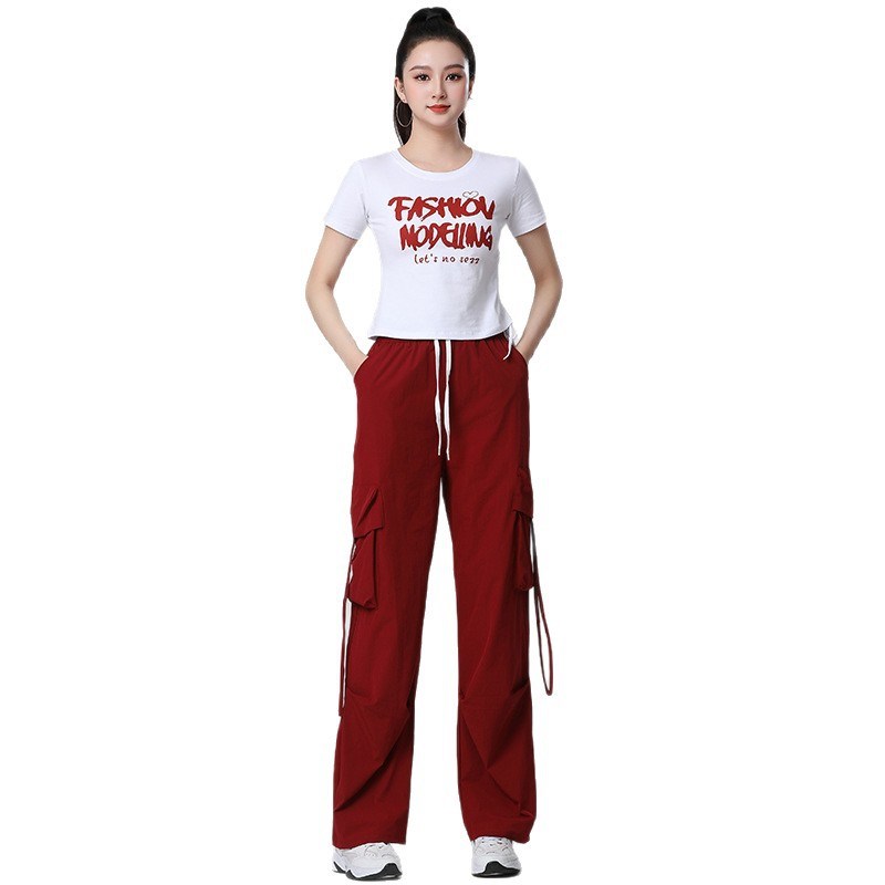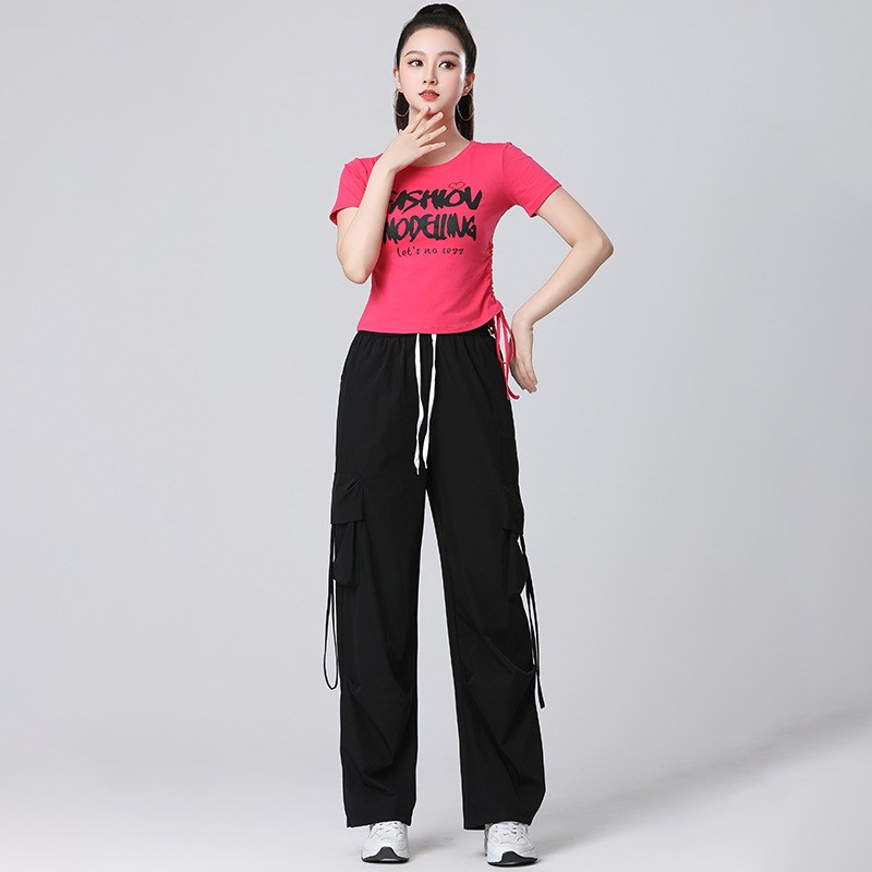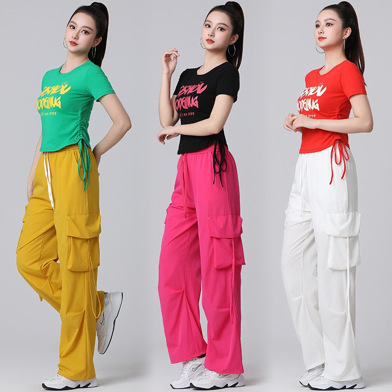 2025新款夏季广场舞套装短袖抽绳上衣健身速干工装裤团队演出服装