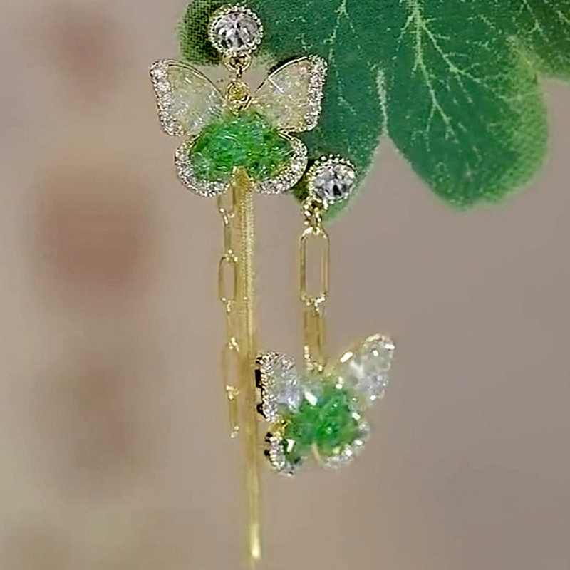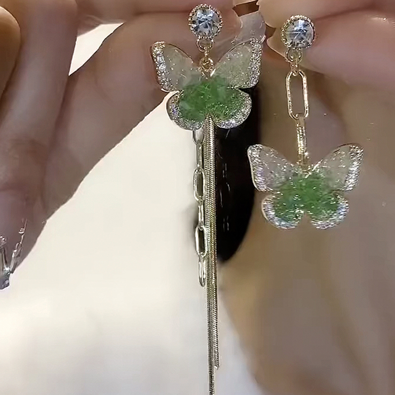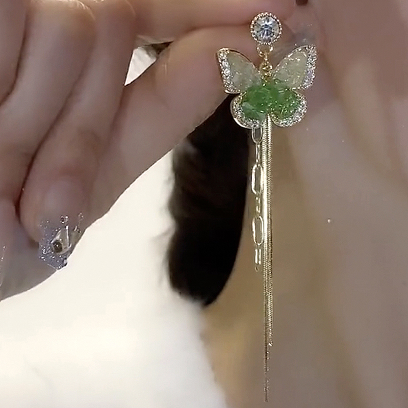 2025年新款潮不对称蝴蝶流苏耳环高级感气质个性网红AB款银针耳饰