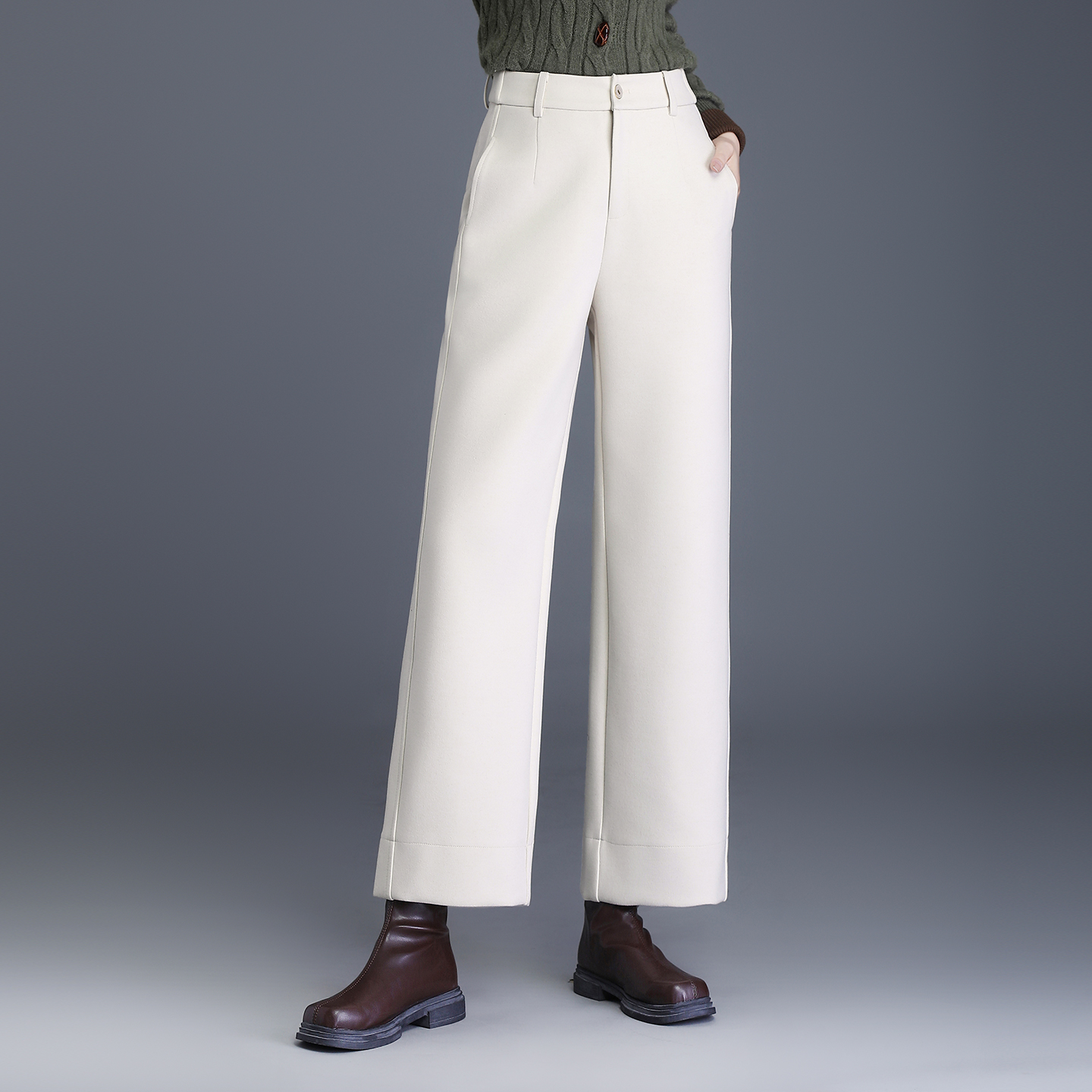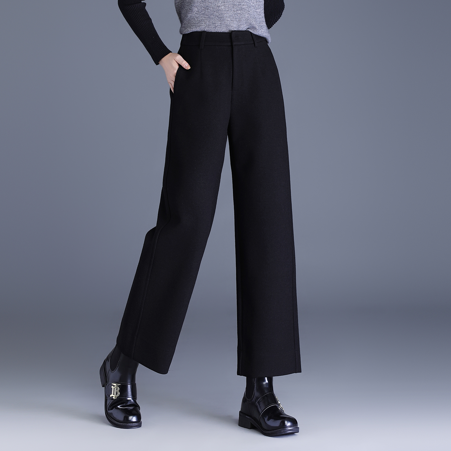 毛呢阔腿裤女秋冬加厚窄版直筒裤
