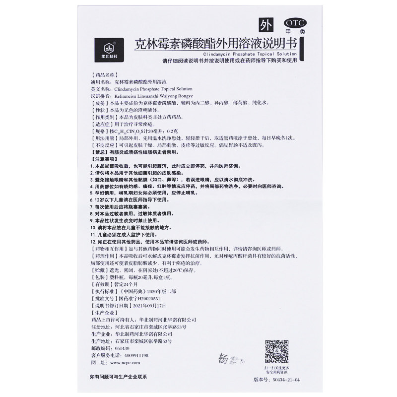 【华北制药】克林霉素磷酸酯外用溶液20ml*1瓶/盒