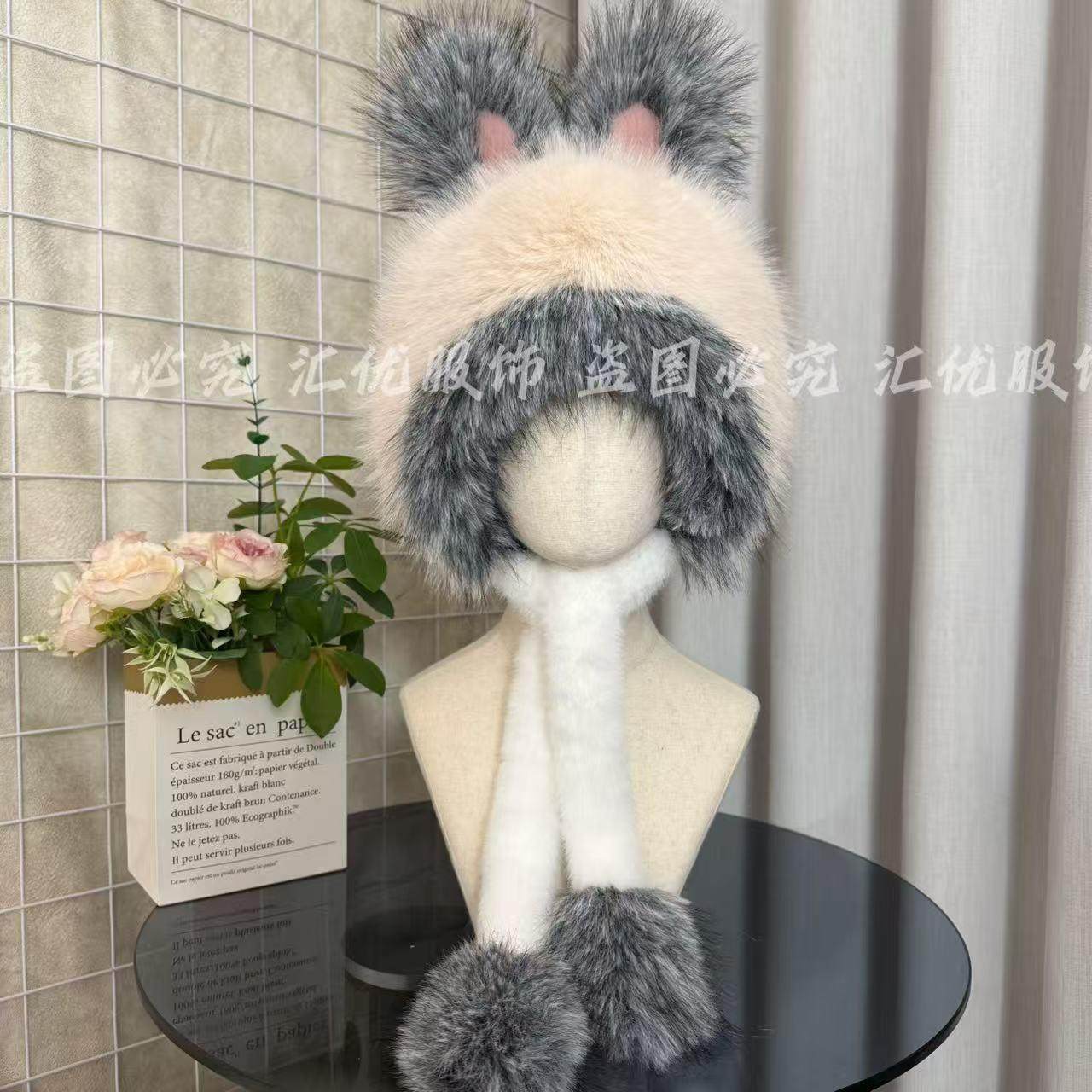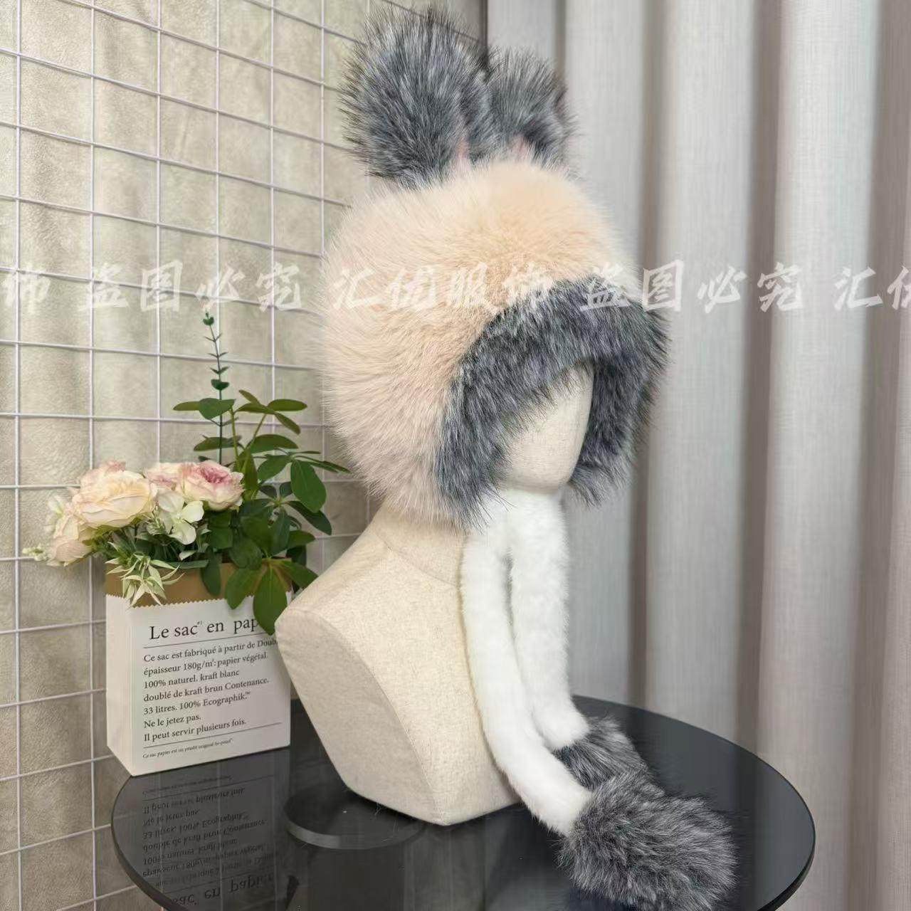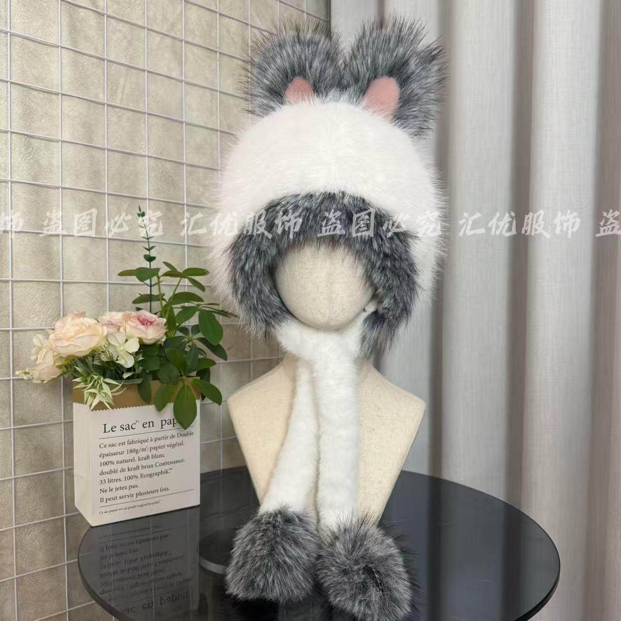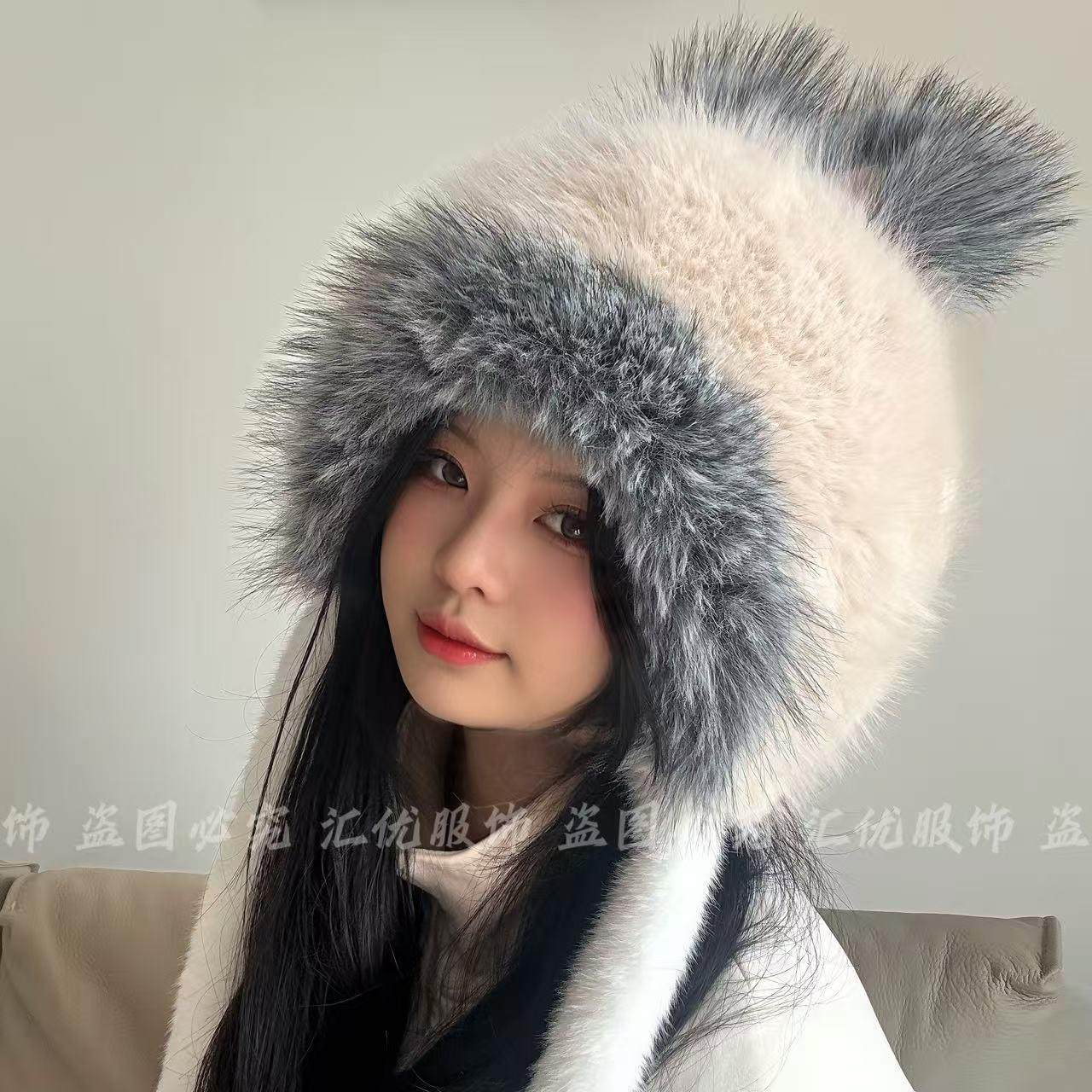 【甩卖】新款冬季小兔耳朵毛绒帽子可爱大头围防风护耳保暖