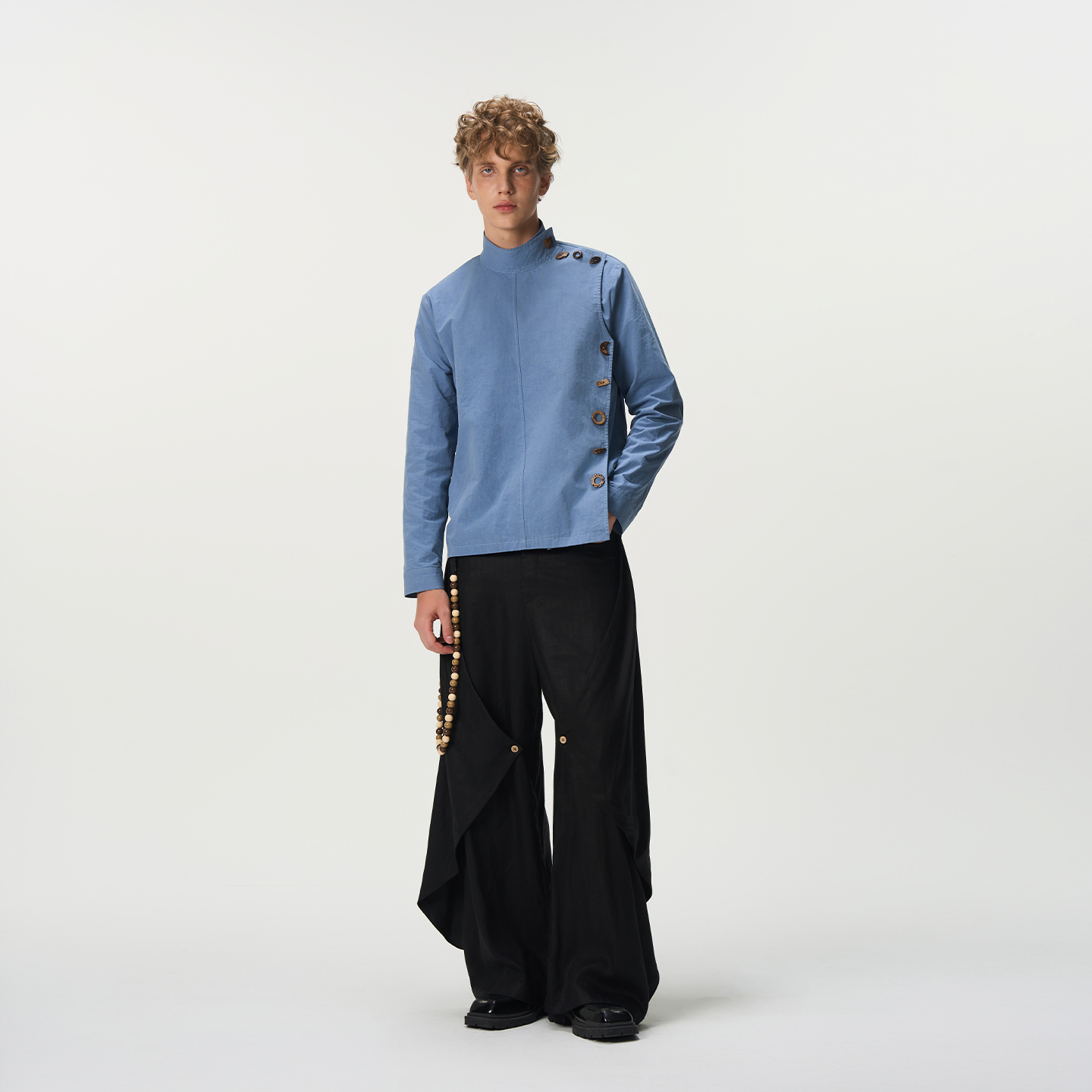 CNEW 寂照无尘斜襟手缝椰壳扣改良剑道服棉麻混纺衬衫夹克男女款