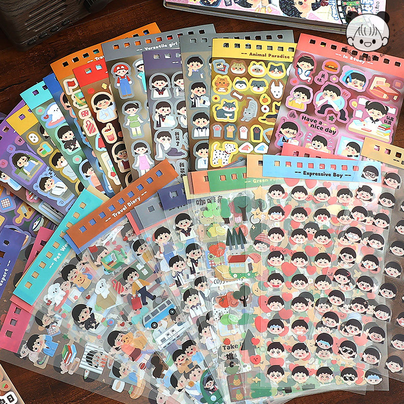 提拉多丘丘人贴纸本素材本手帐贴纸日本小人可爱少女心ins卡通人物手账贴画女孩儿童手杖一整本装饰小图案
