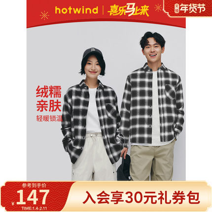 热风2025年秋季新款男女同款法兰绒长衬衫全棉绵软亲肤柔软舒适