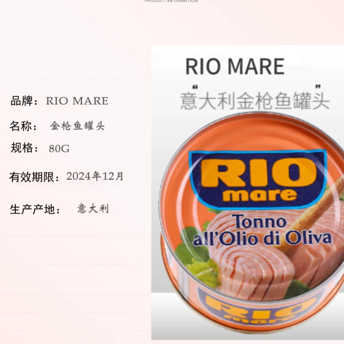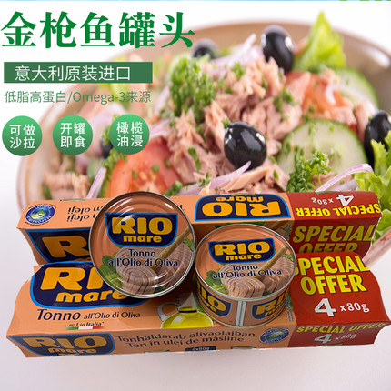 意大利RIOMARE橄榄油浸金枪鱼罐头进口吞拿鱼肉沙拉即食健身80G