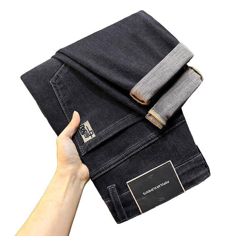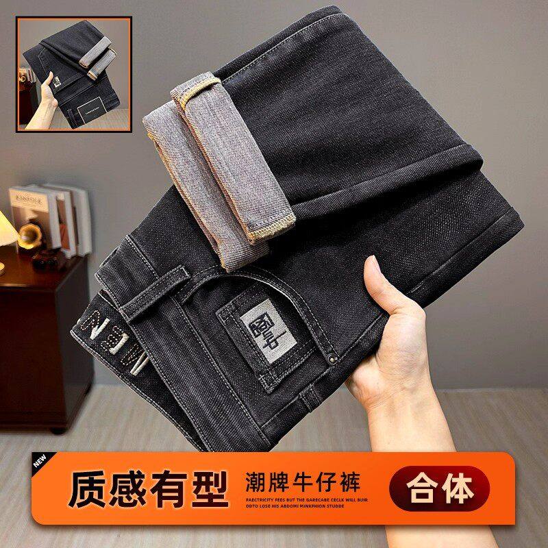 Yishion以纯官方时尚正品加绒牛仔裤男士秋冬2025新款宽松直筒休