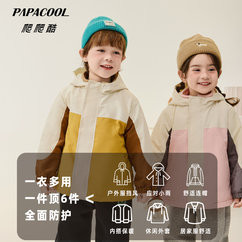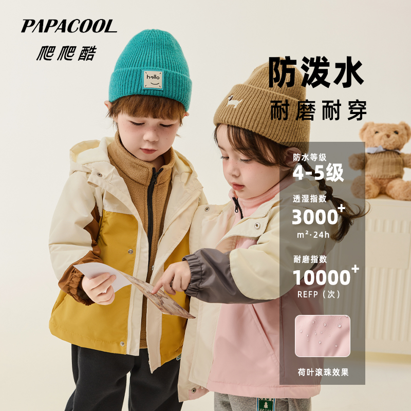 爬爬酷童装男童冲锋衣儿童外套三合一2025新款女孩户外春秋款上衣