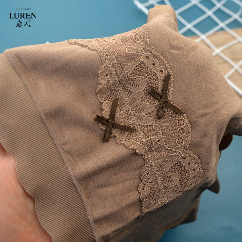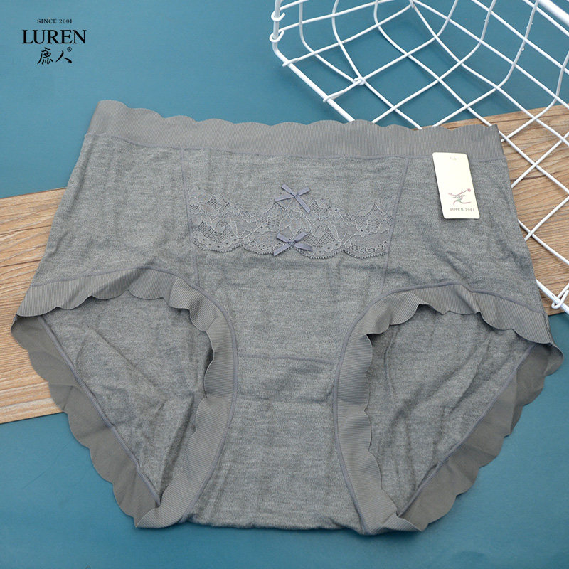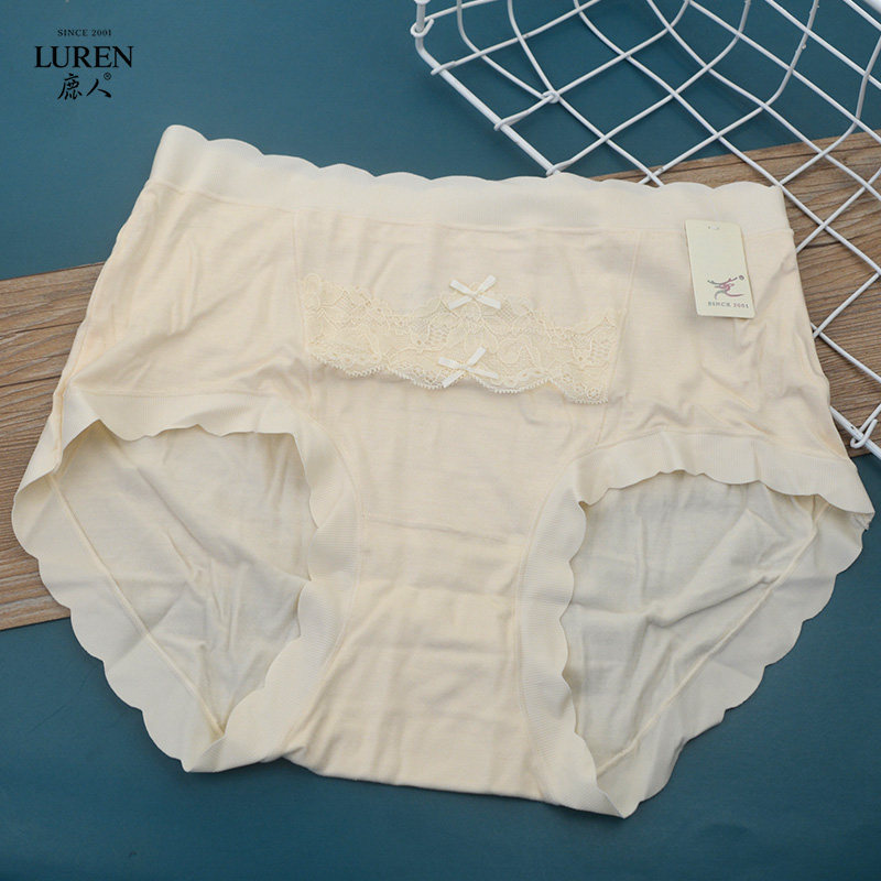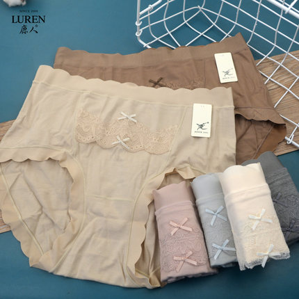 鹿人女士中腰蕾丝三角裤蝴蝶结装饰透气舒适内裤3363桑蚕丝底裆