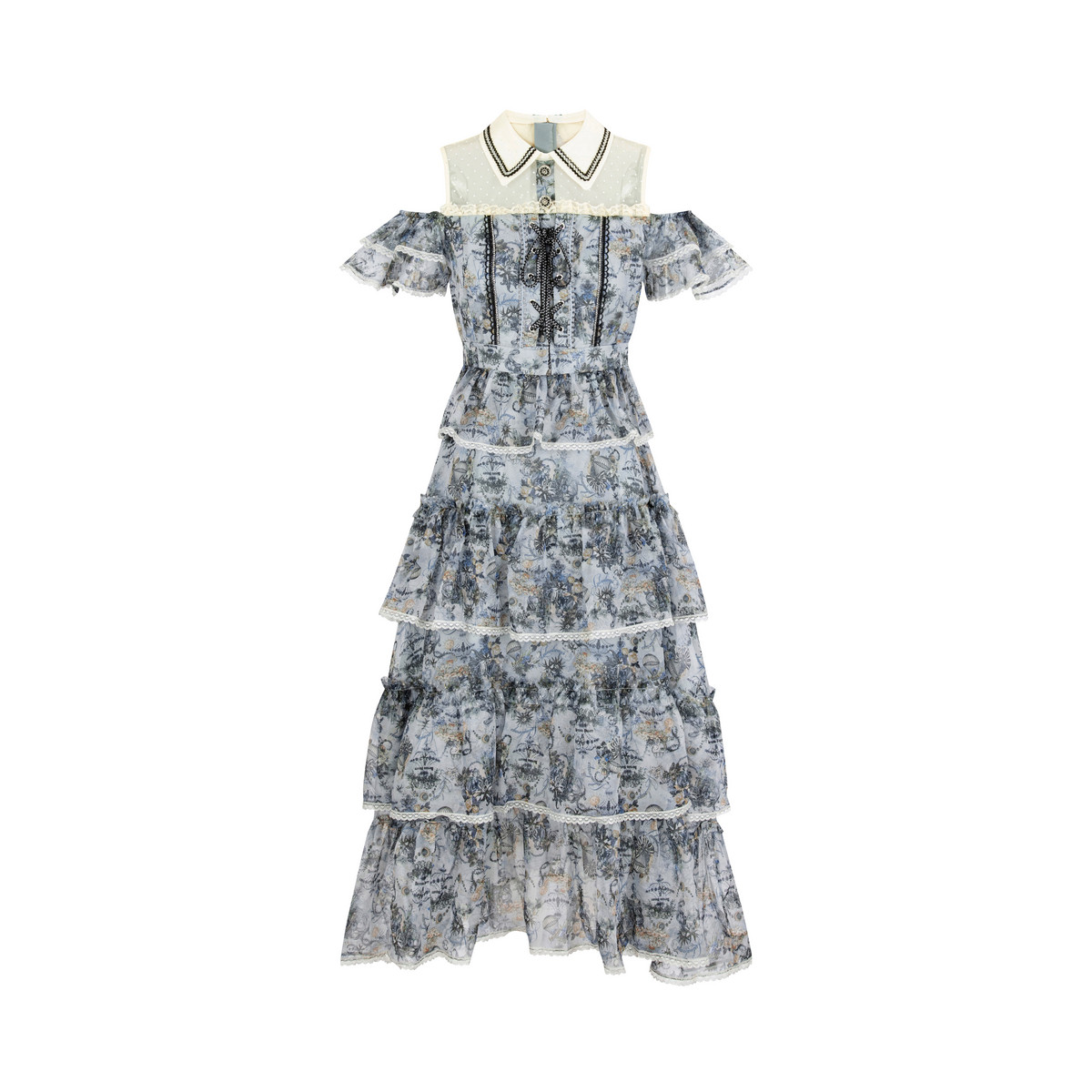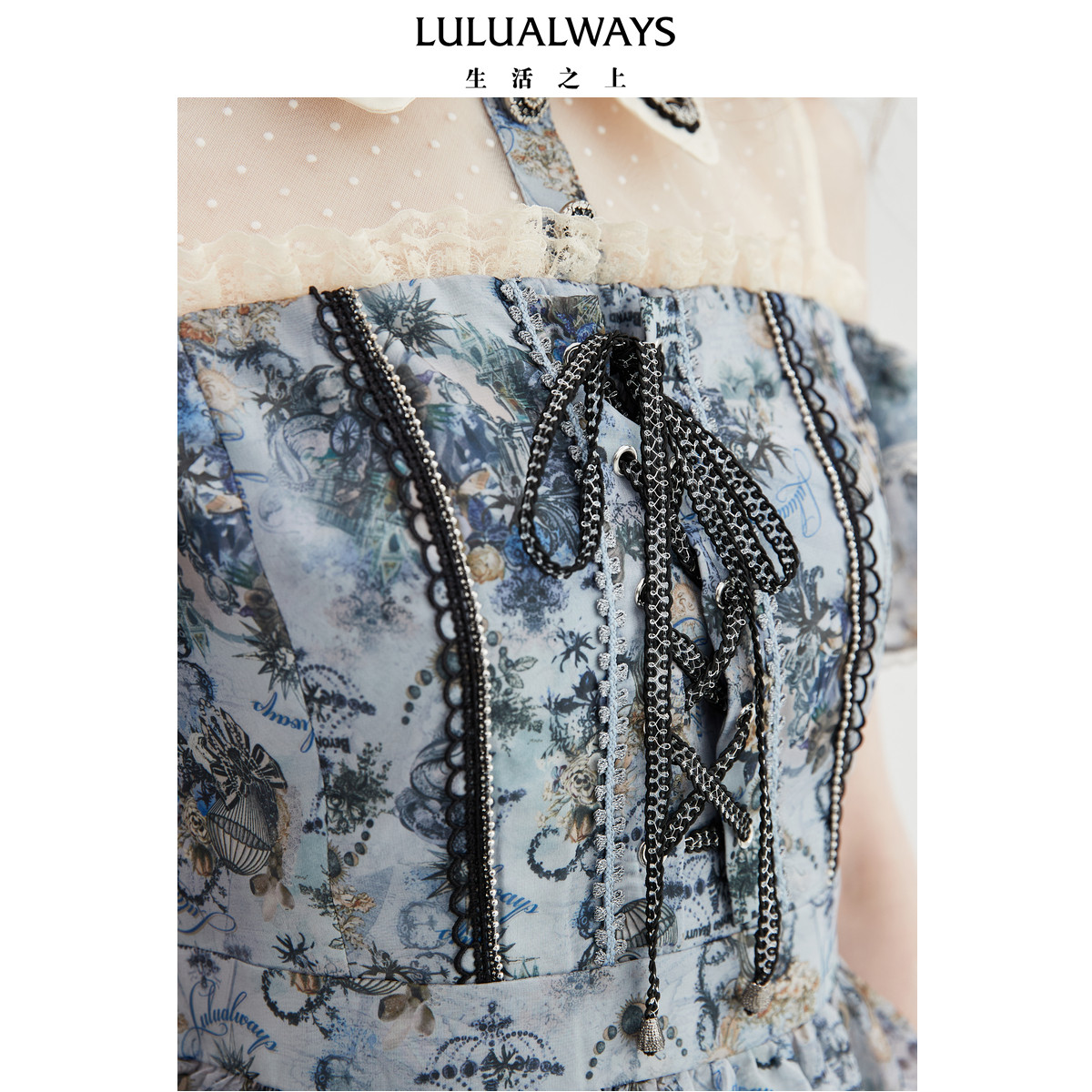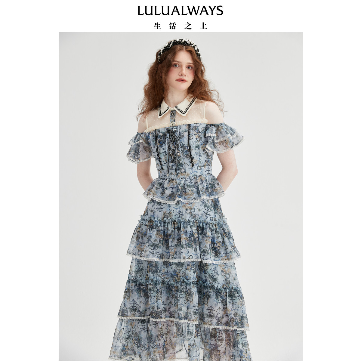 LULUALWAYS【商场同款】法式优雅风气质蕾丝蛋糕连衣裙