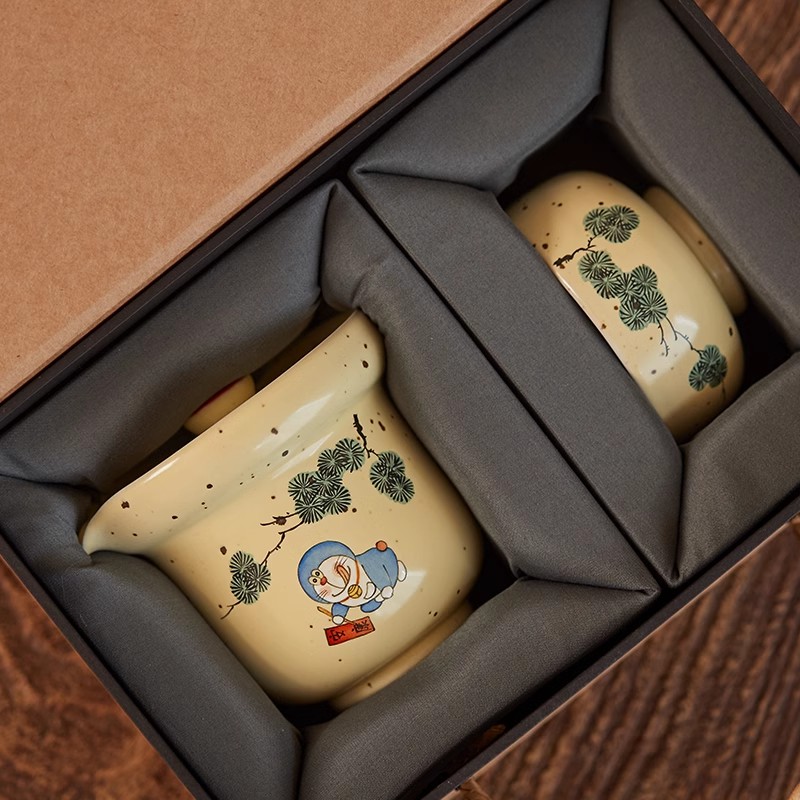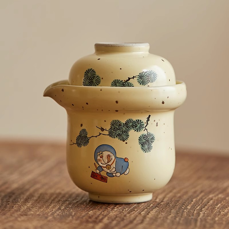 景德镇陶瓷手绘蓝胖子一壶一杯旅行茶具茶壶便携式功夫茶杯茶器