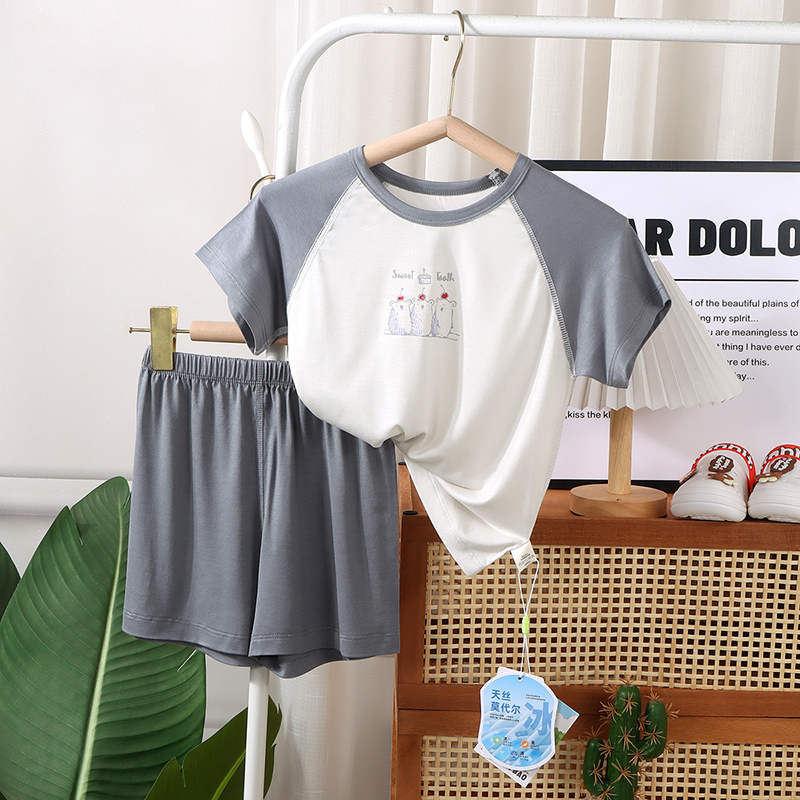 婴幼儿夏天衣服短袖短裤莫代尔家居服无骨套装男童女宝宝空调睡衣