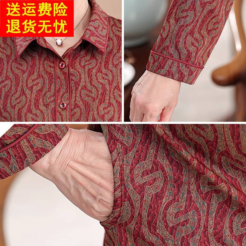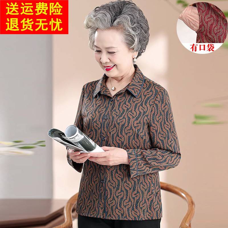 中老年人女夏装长袖衬衣服妈妈套装老太太衬衫大码奶奶春秋装薄款