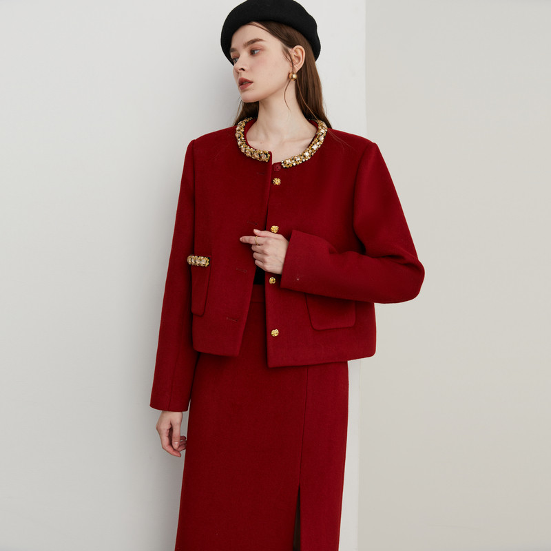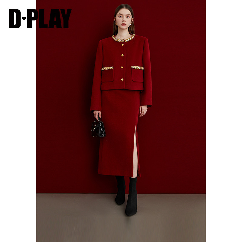 DPLAY【黑标】2025年冬季气质法式红色大衣羊毛毛呢外套女