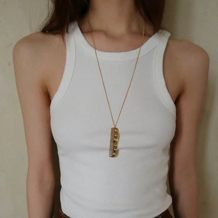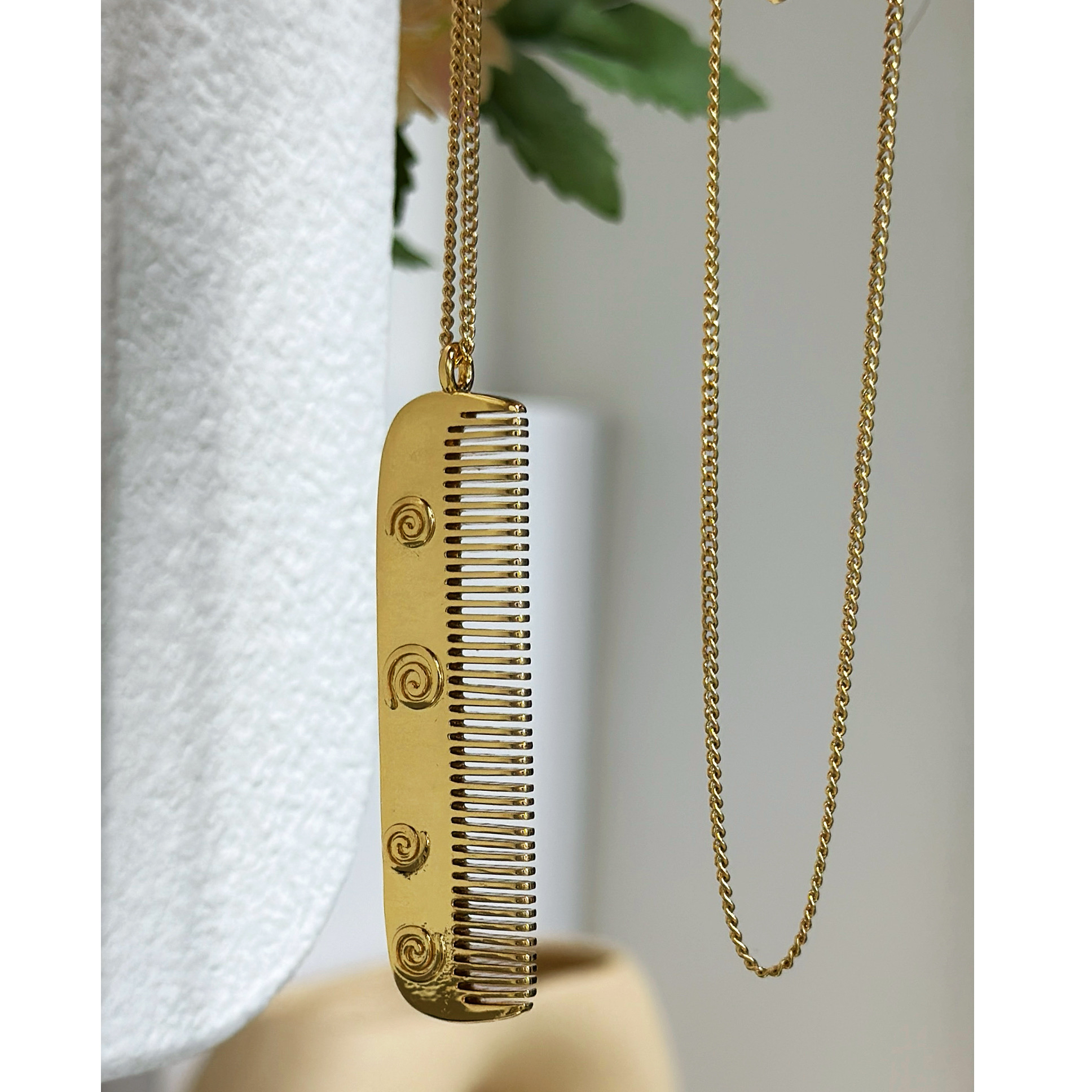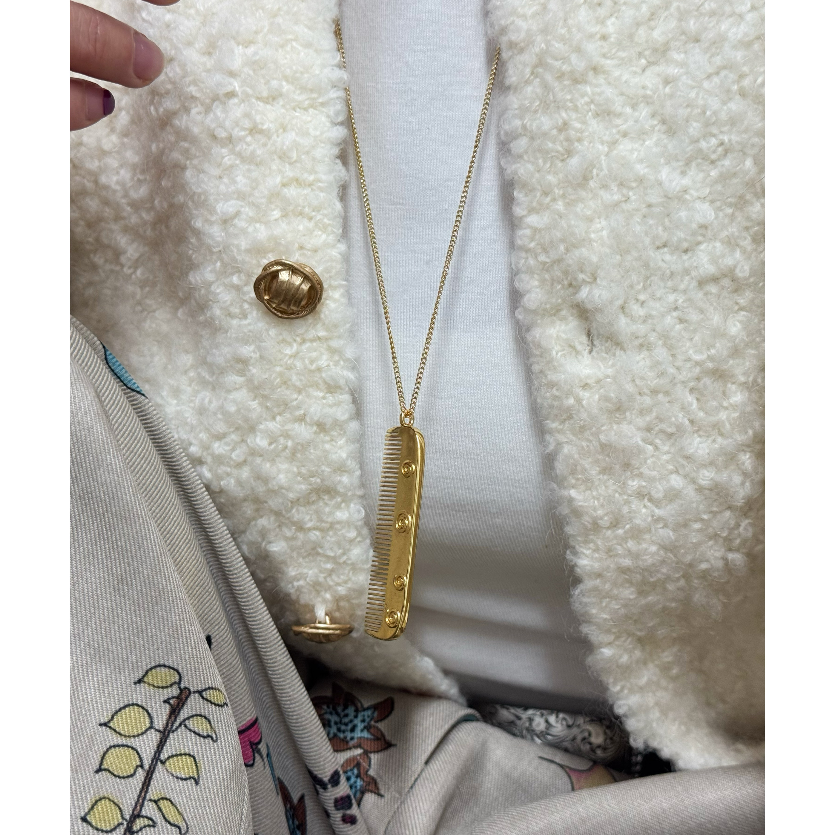小众设计Peigne佩因梳子项链 黄铜镀18K金立体雕刻长款时髦颈链