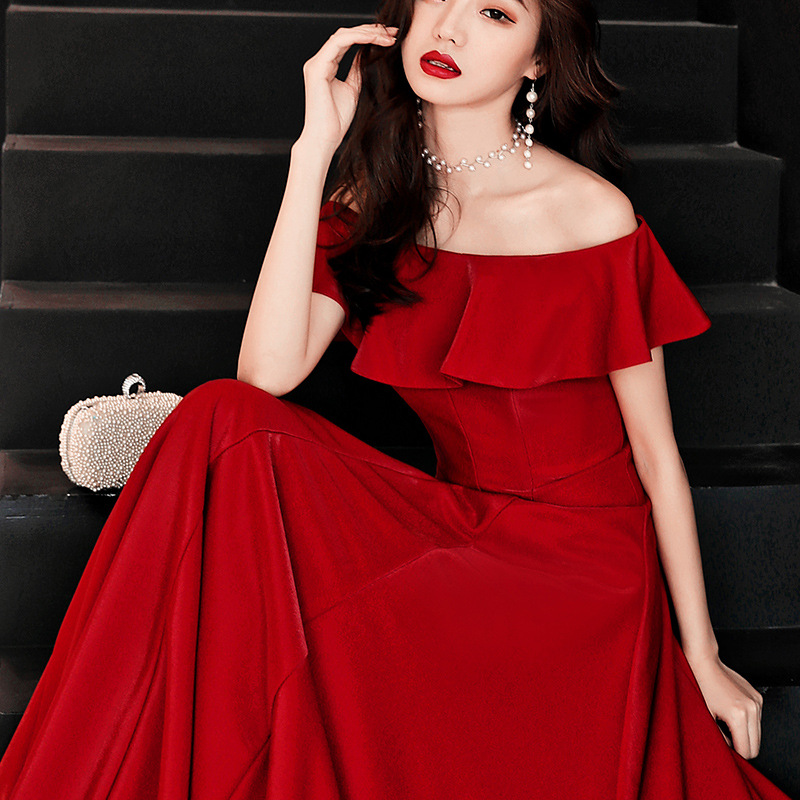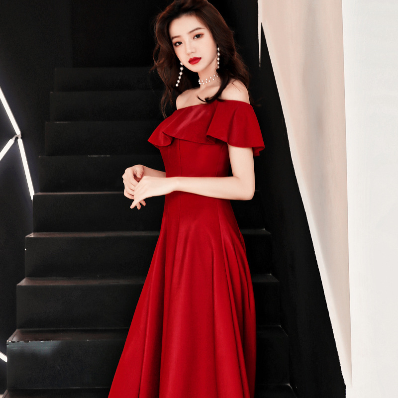 敬酒服新娘2025年结婚新款夏季款端庄一字肩显瘦红色晚礼服女宴会