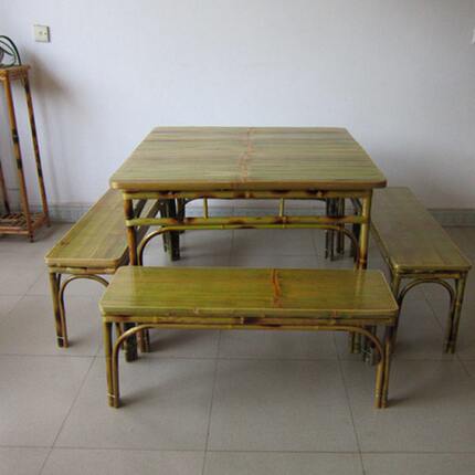 成套竹桌椅 竹条凳桌子 餐厅饭店农庄竹桌凳 餐凳 餐桌竹家具