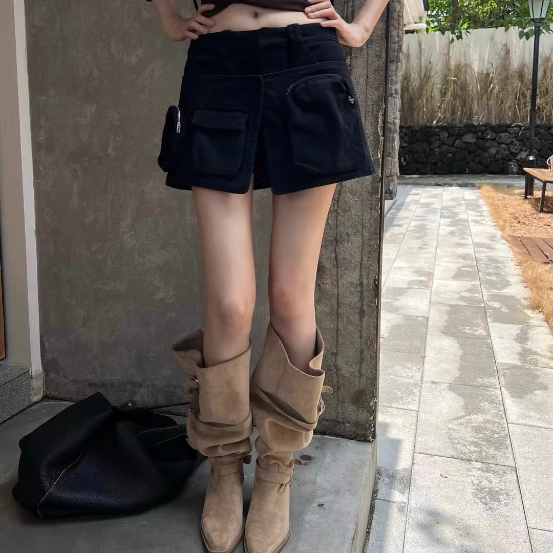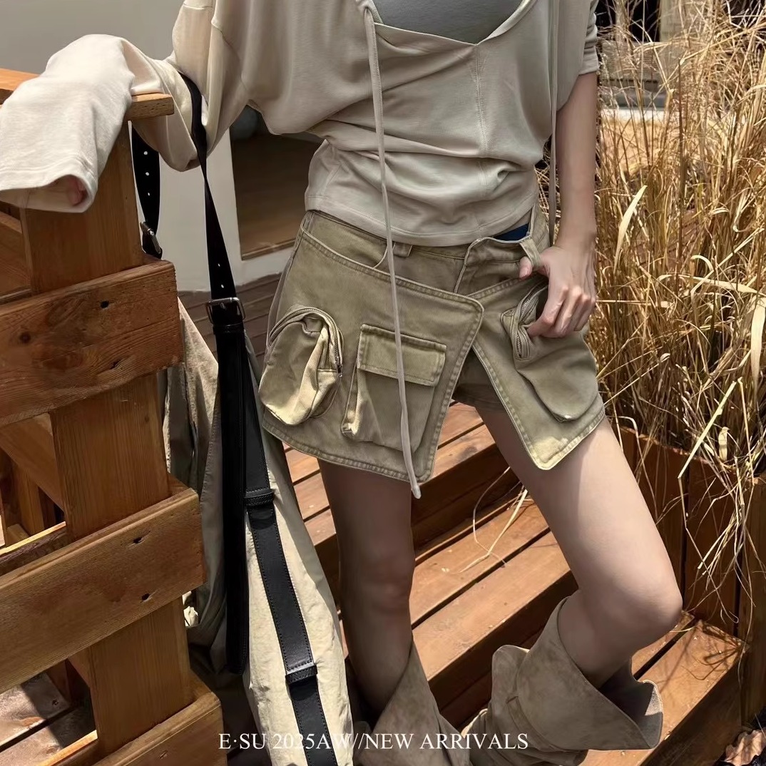 Esu2025秋季新款设计感短裤拼接一片式半身裙时尚辣妹防走光裙裤