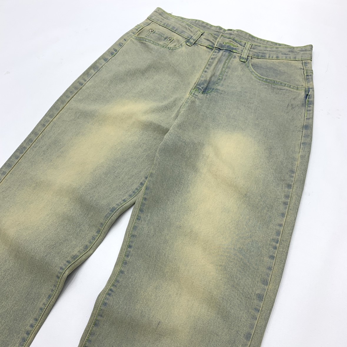 洗白牛仔裤男阿美咔叽宽松直筒拖地裤重水洗夏季薄款阔腿老爹裤女