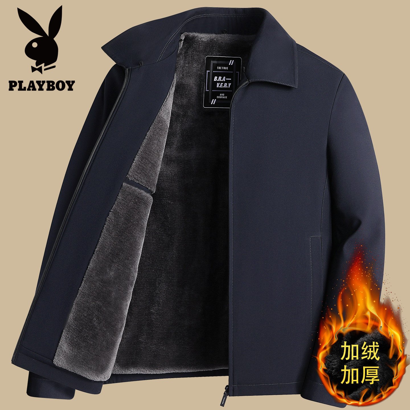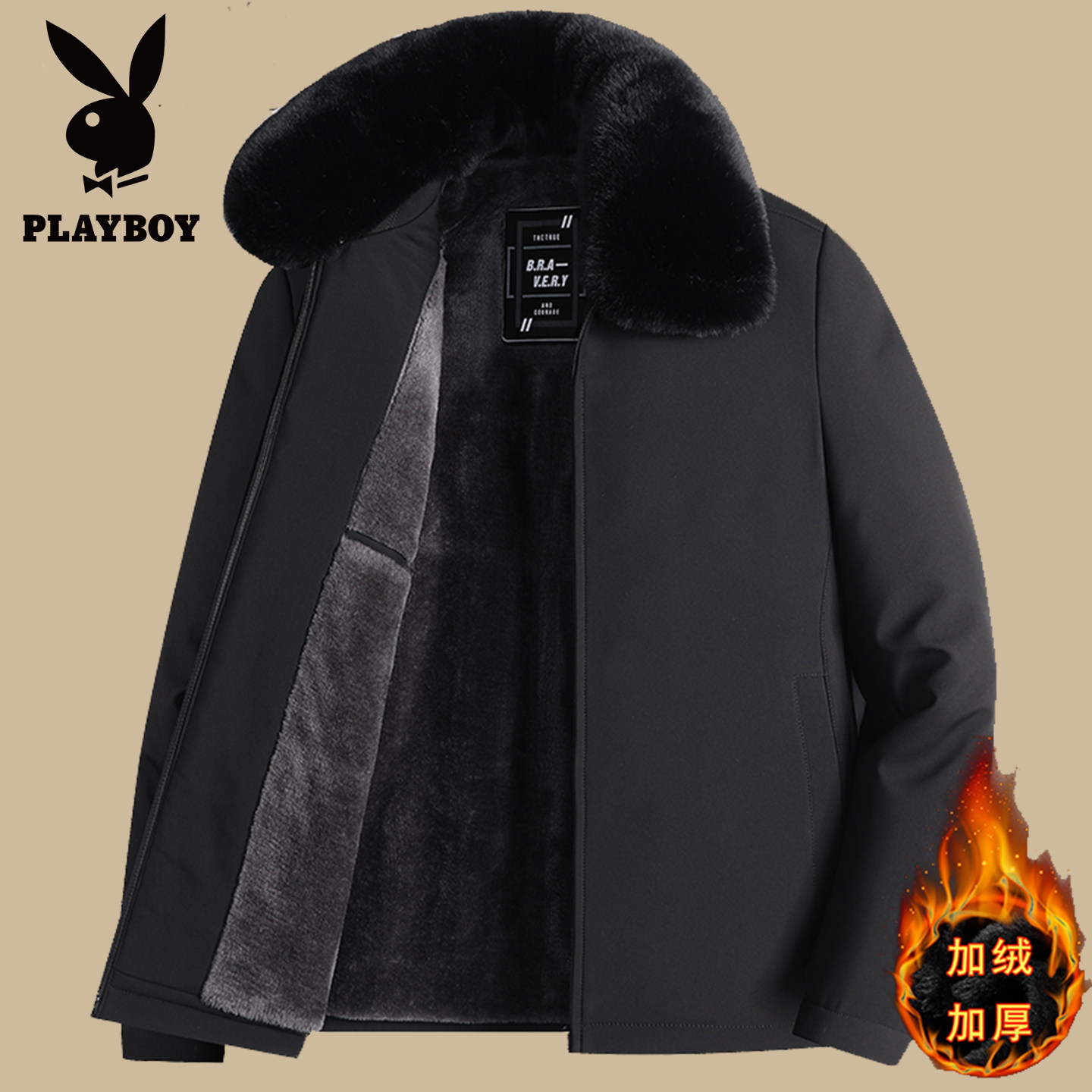 花花公子爸爸秋冬外套冬季棉衣男加绒加厚棉服爷爷翻领保暖夹克衫